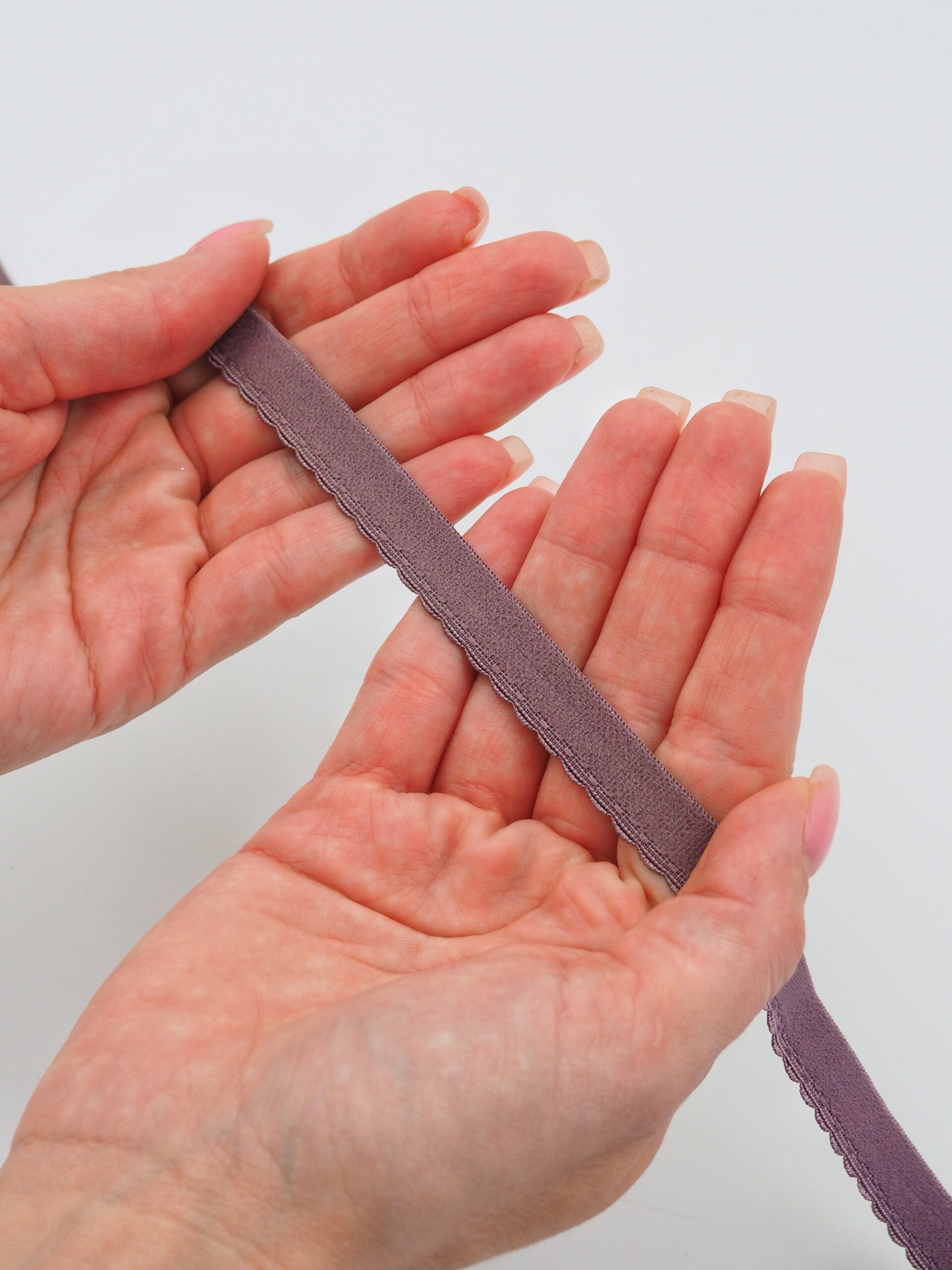 Становая резинка ажурная фиолетовая отделочная бельевая. Тесьма эластичная оттенка крокус.