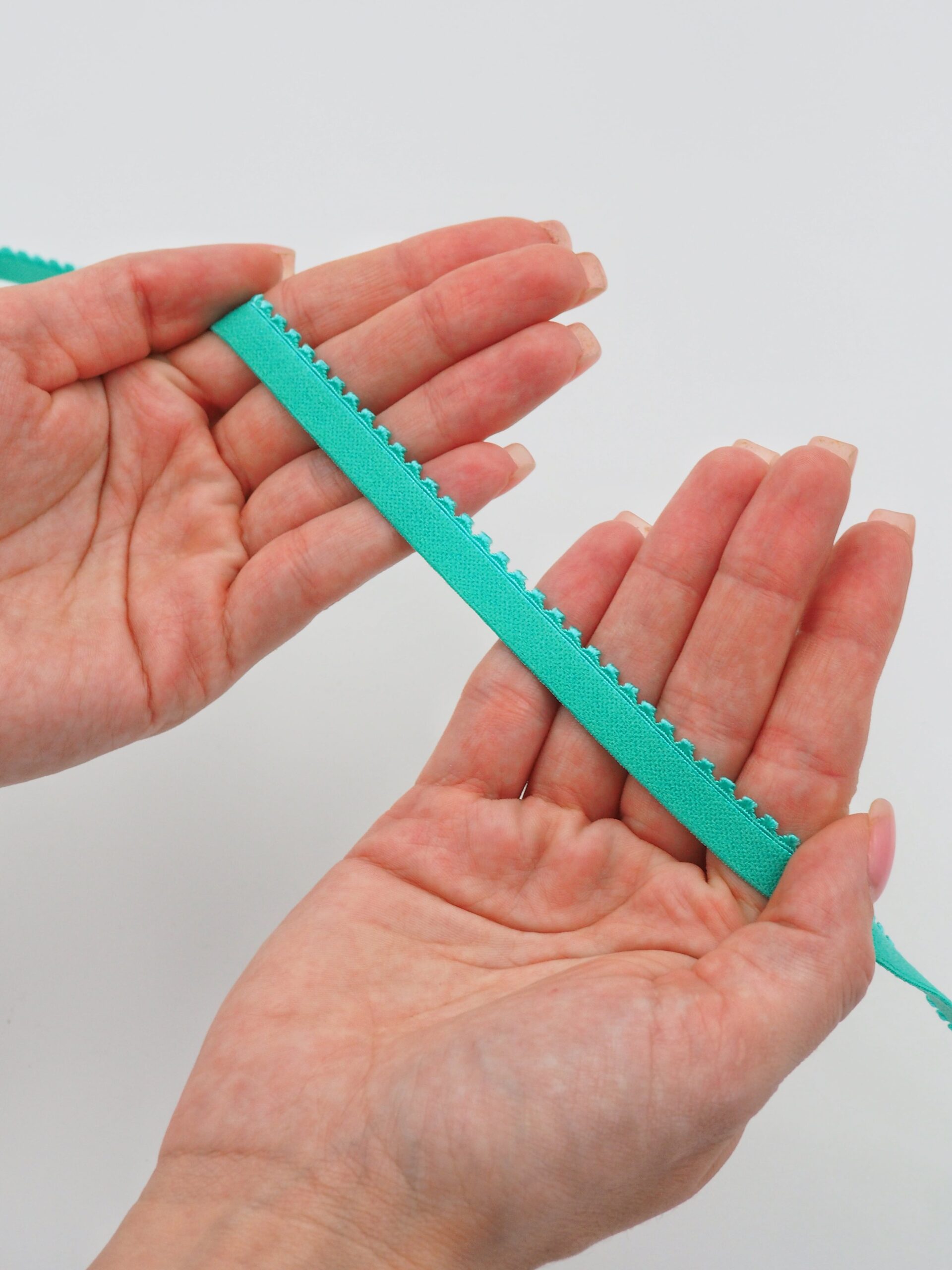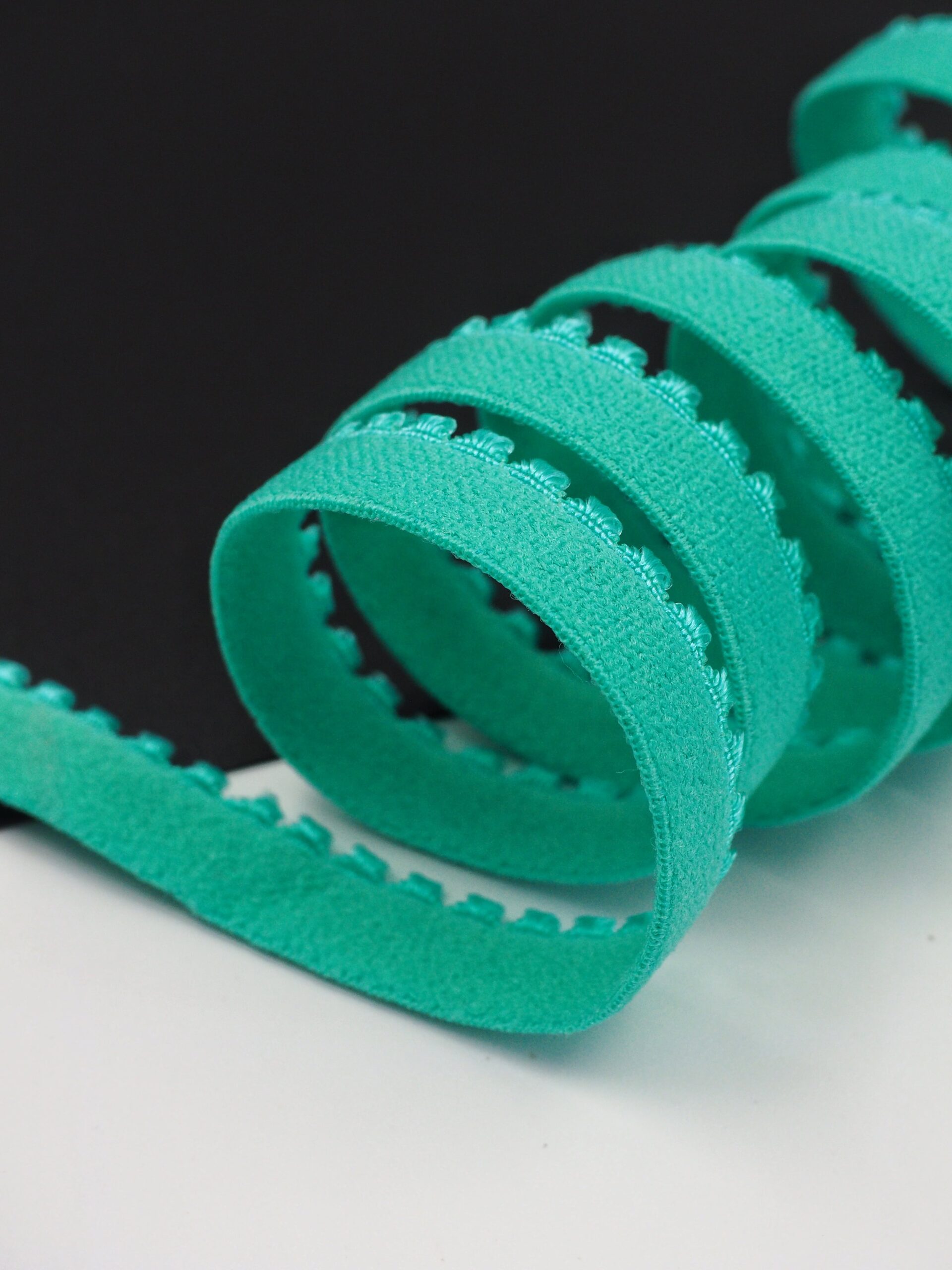 Становая резинка ажурная мятная отделочная бельевая. Тесьма эластичная ментолового оттенка.