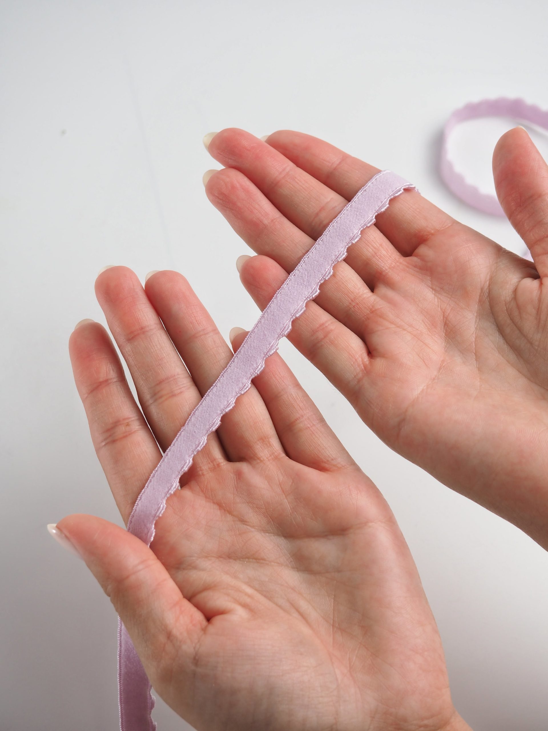 Резинка становая нежно-сиреневая используется при пошиве нижнего белья для отделки бюстгальтера, создания талии и обеспечения плотной посадки изделия.