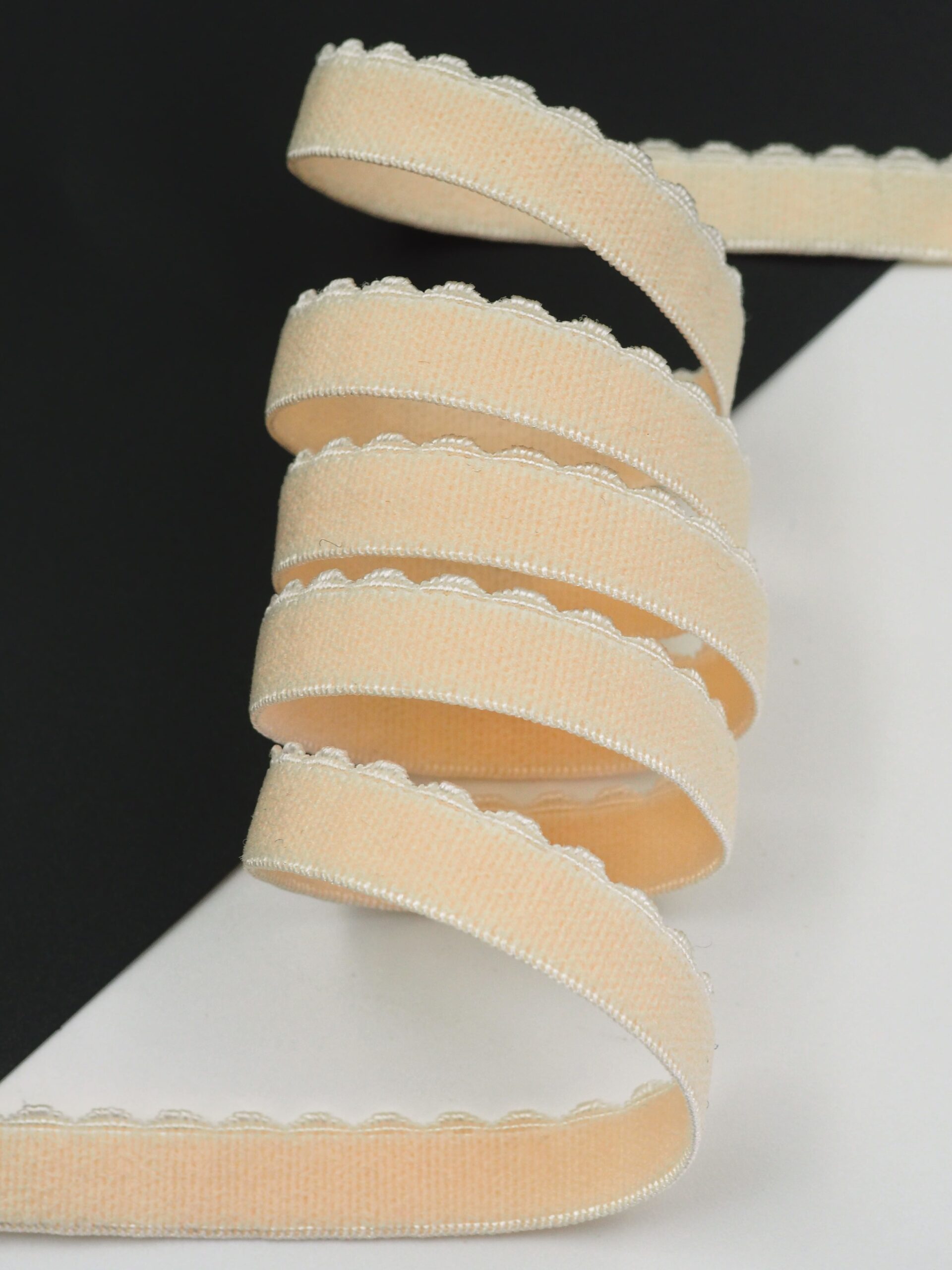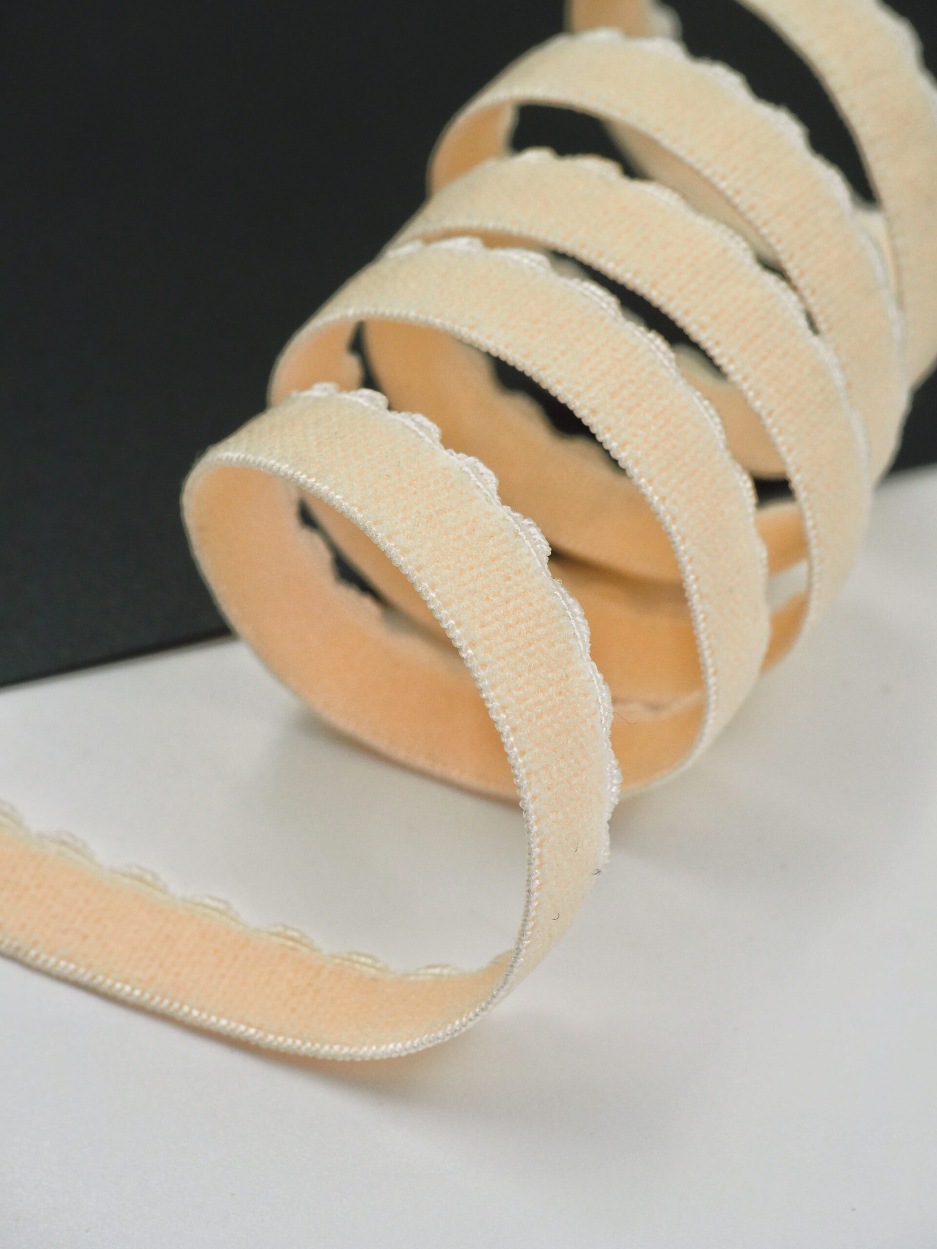 Становая резинка ажурная бежевая отделочная бельевая. Тесьма эластичная оттенка пион.