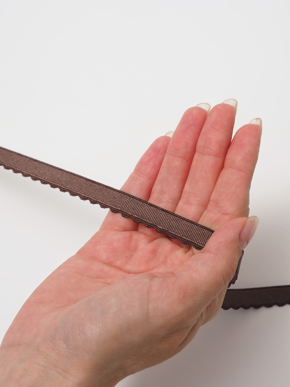 Становая отделочная резинка ажурная черная отделочная бельевая. Тесьма эластичная коричневого оттенка.