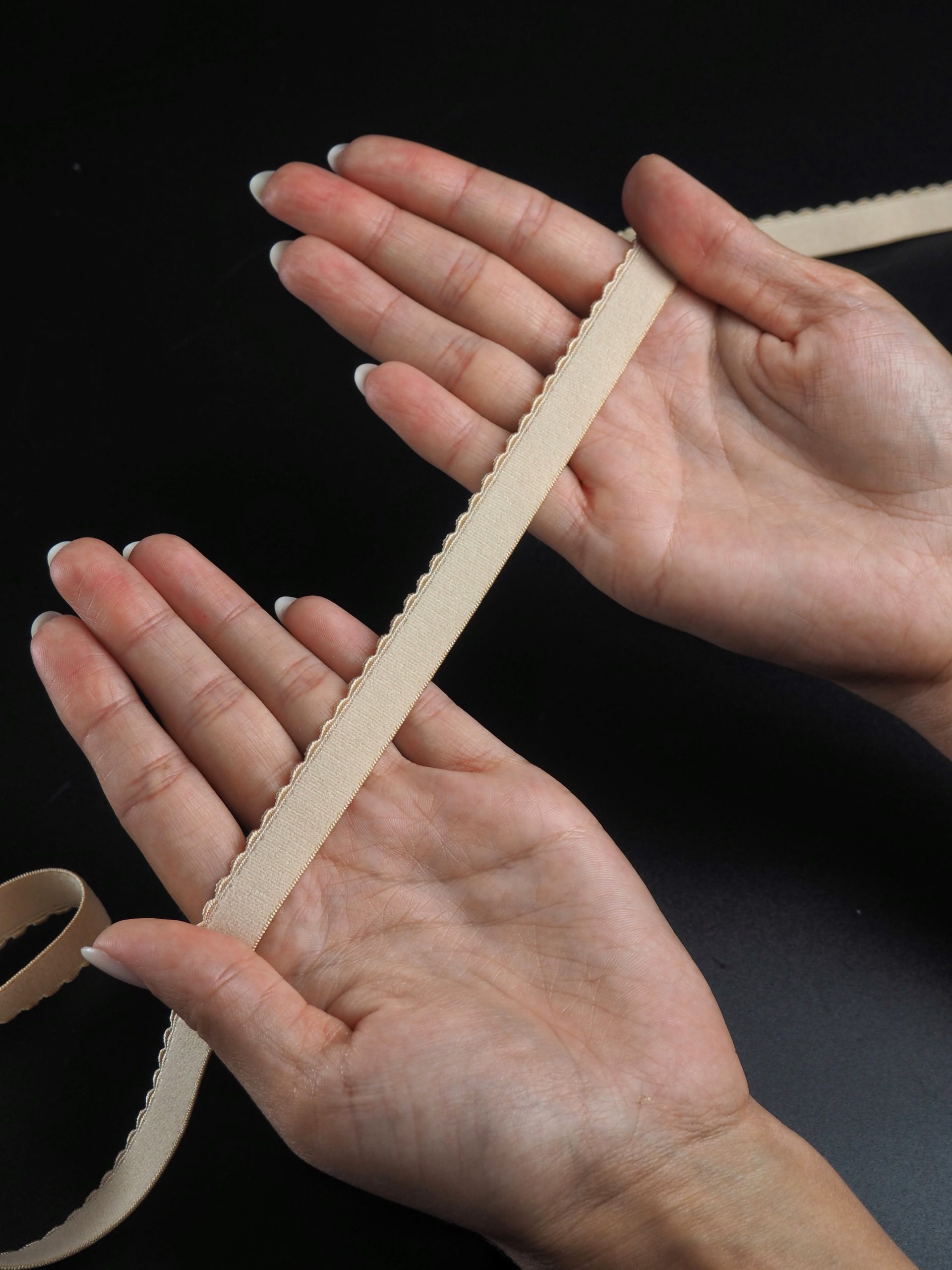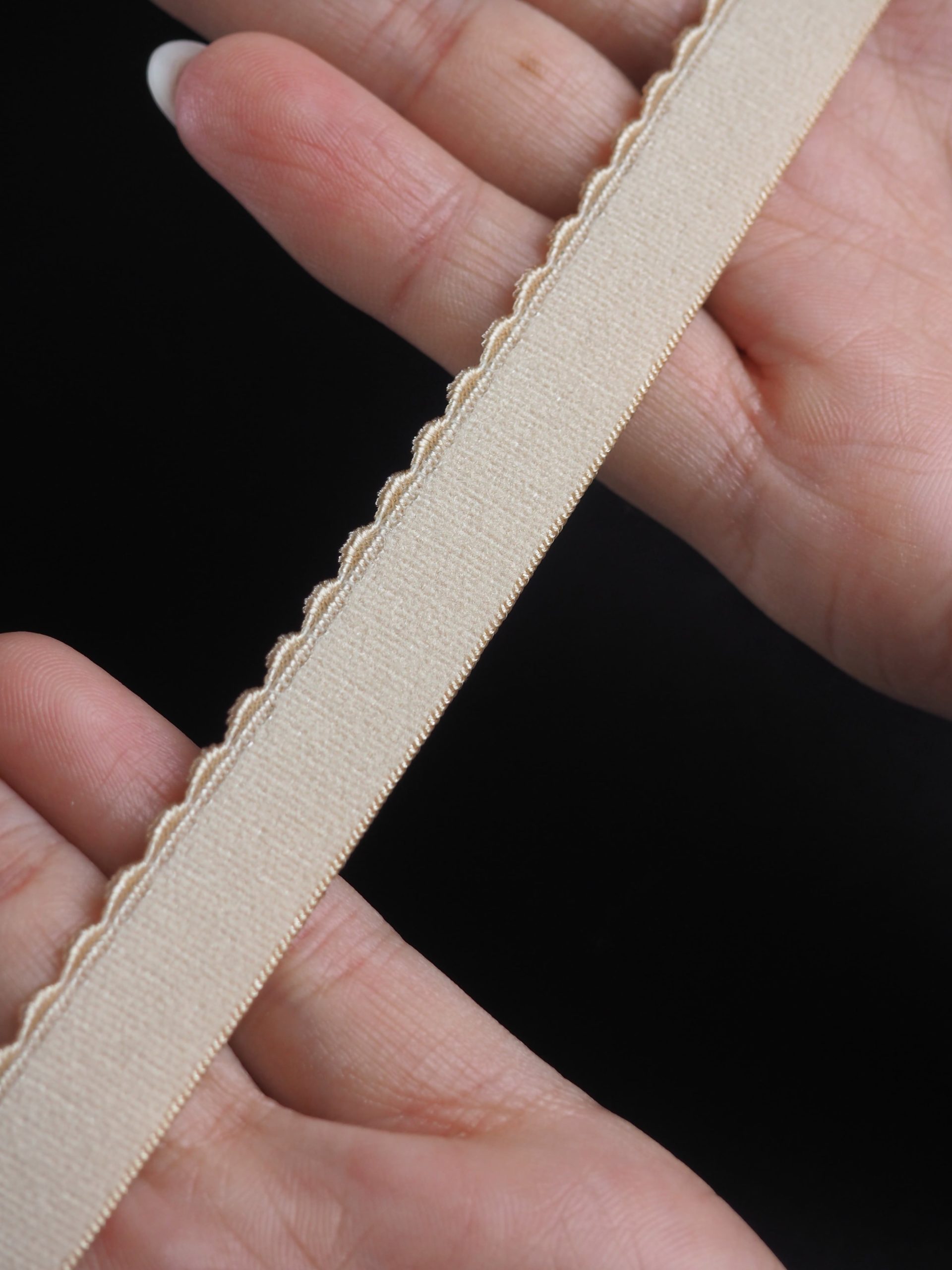 Резинка становая светло-бежевая используется при пошиве нижнего белья для отделки бюстгальтера, создания талии и обеспечения плотной посадки изделия.