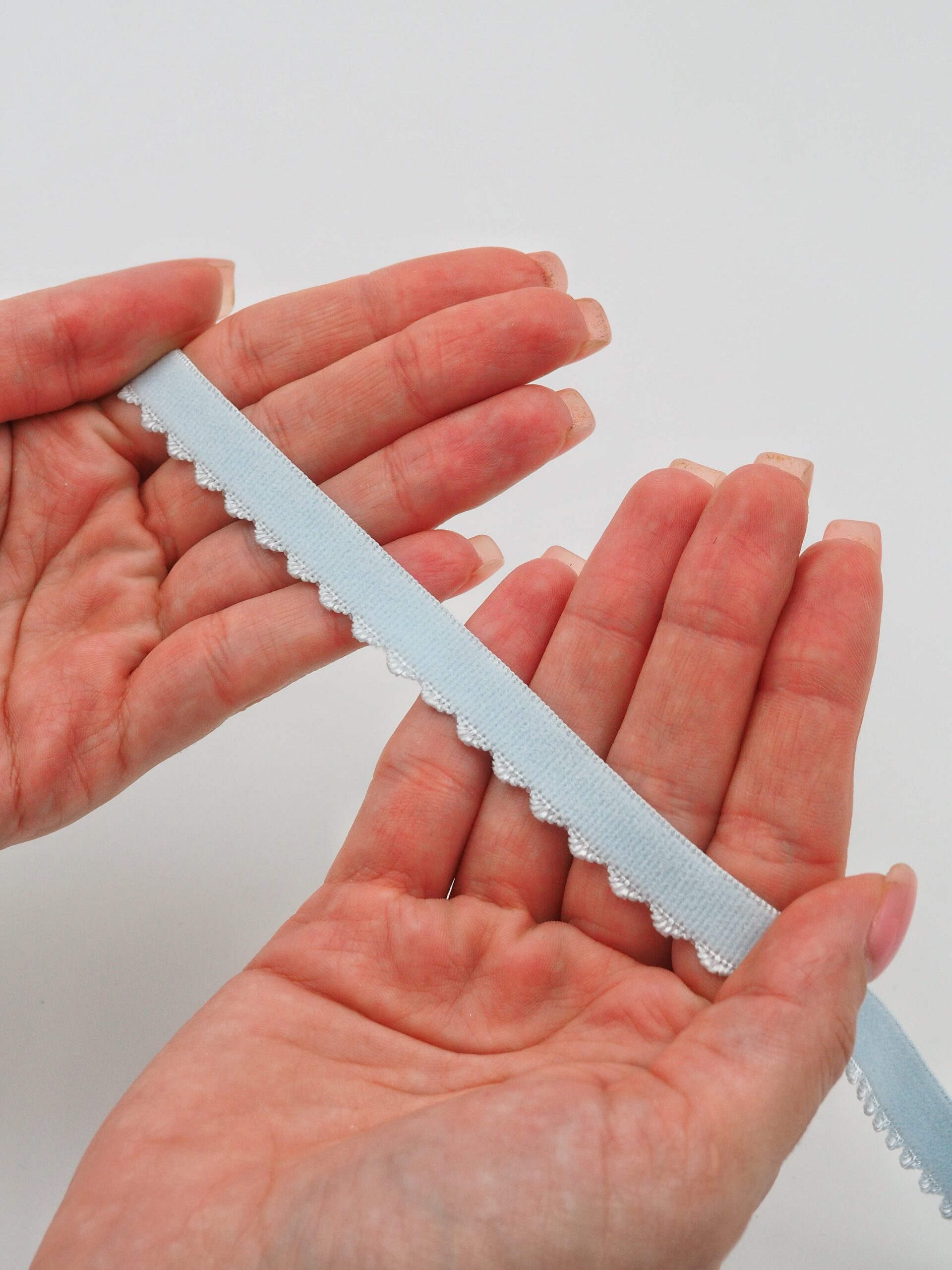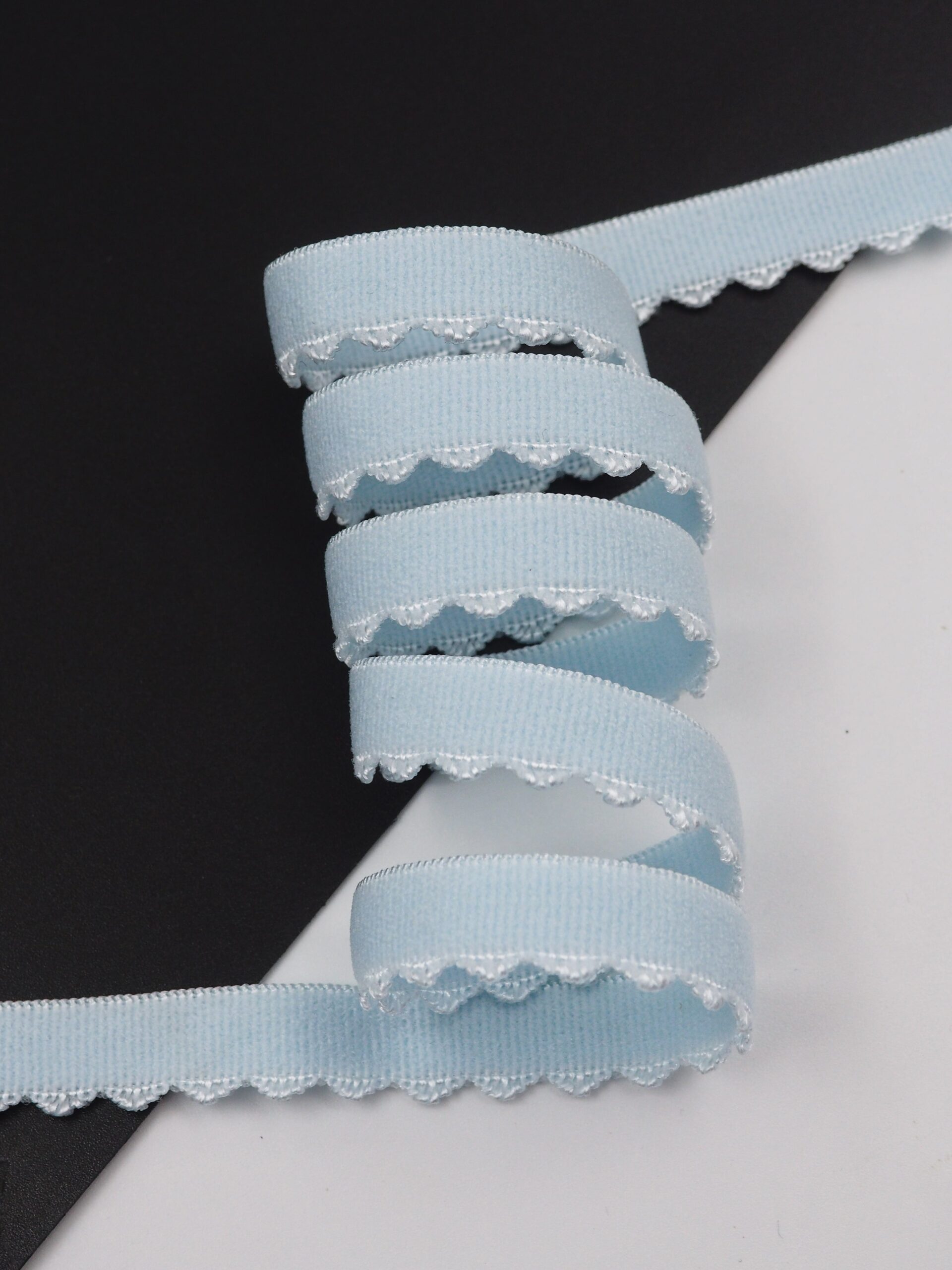 Становая резинка ажурная голубая отделочная бельевая. Тесьма эластичная светло-голубого оттенка.