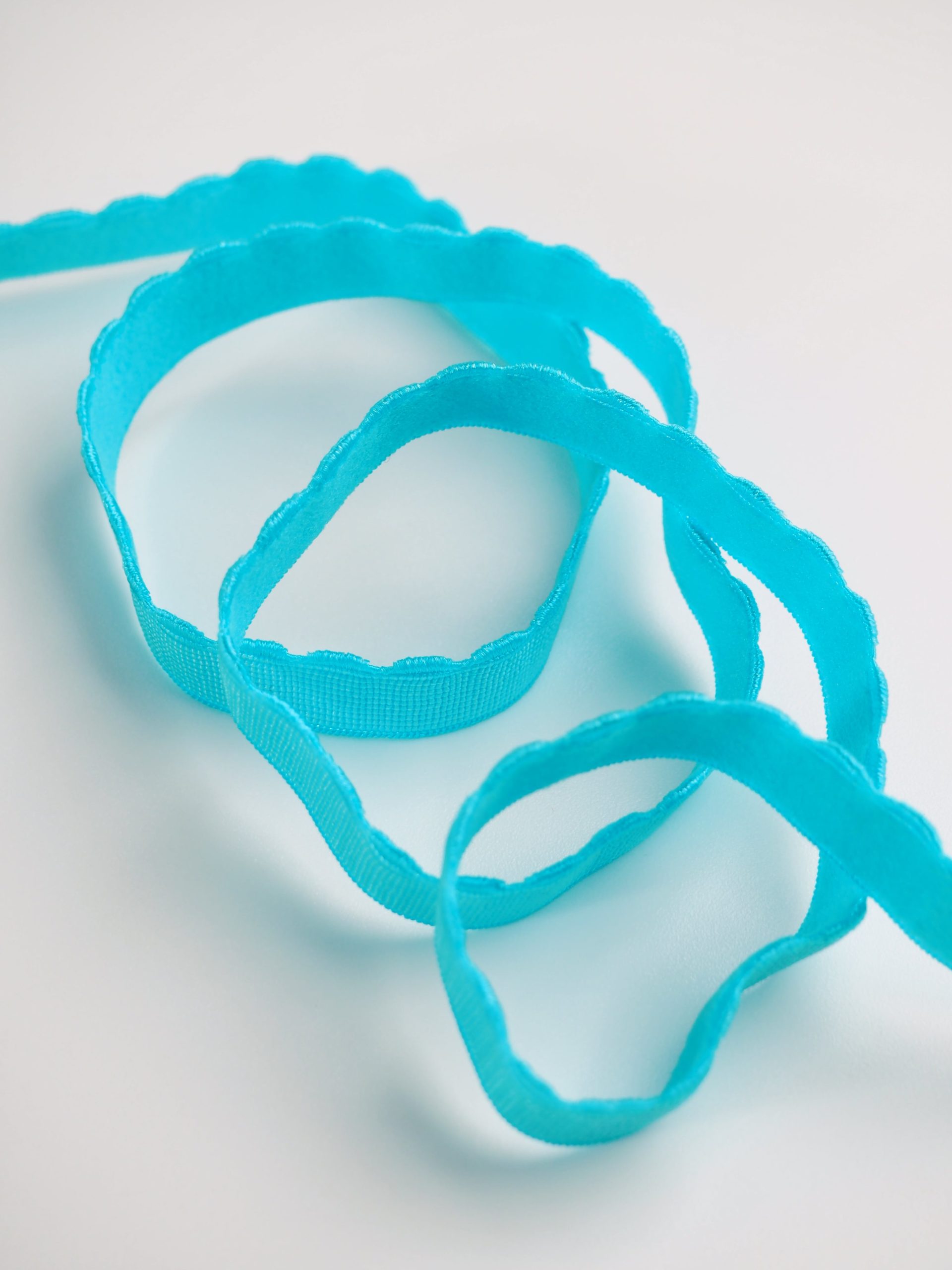 Становая резинка ажурная голубая отделочная бельевая. Тесьма эластичная голубого оттенка.