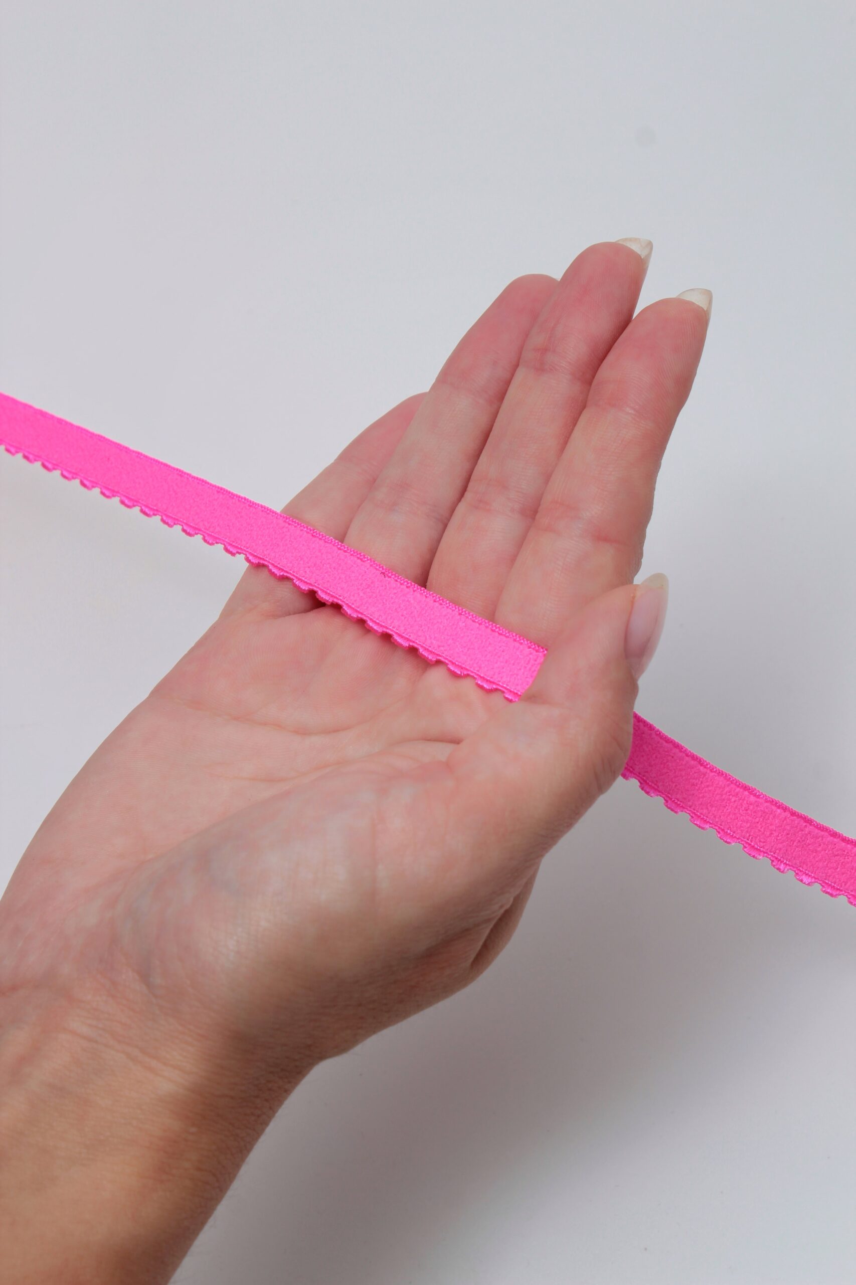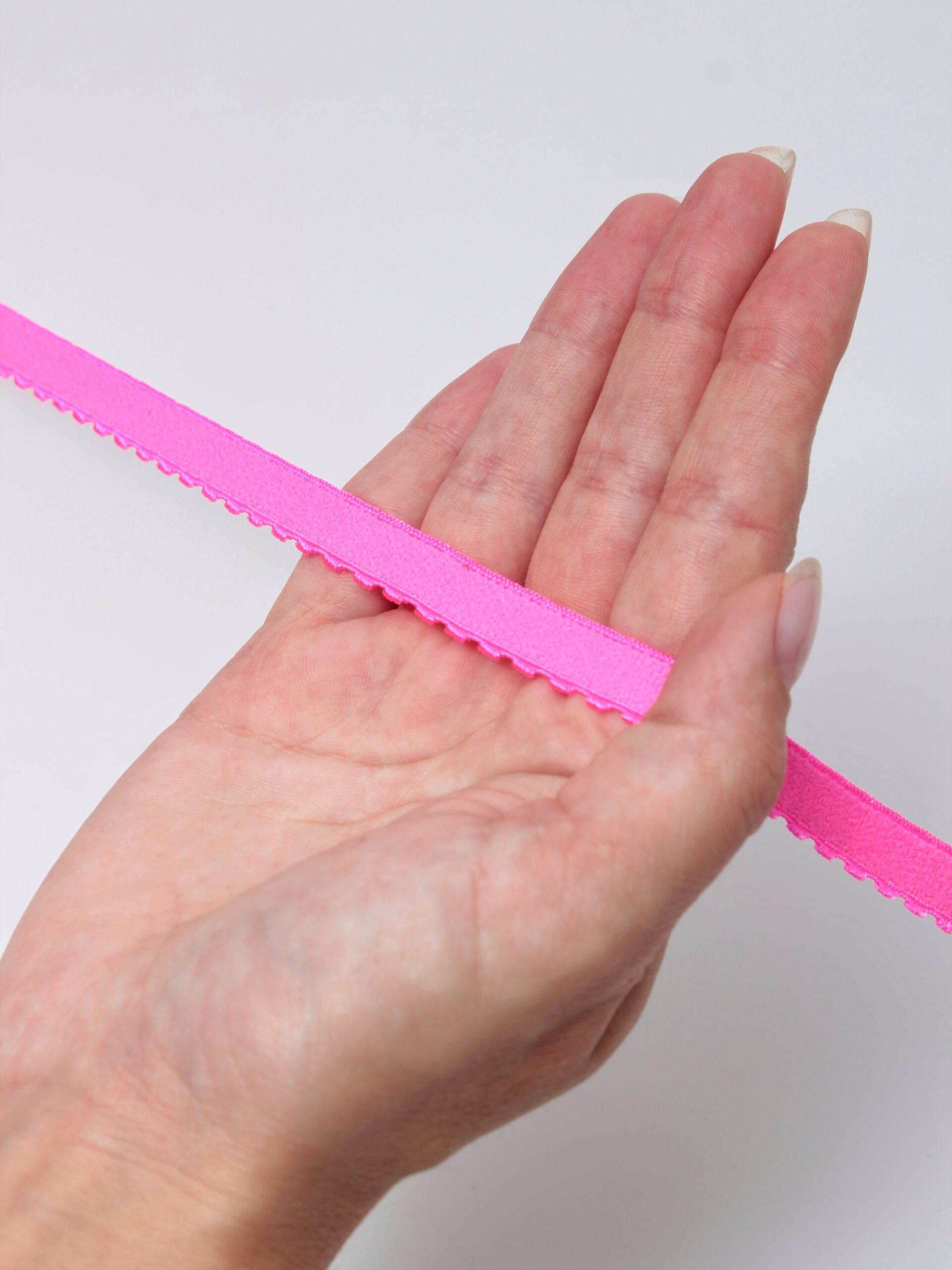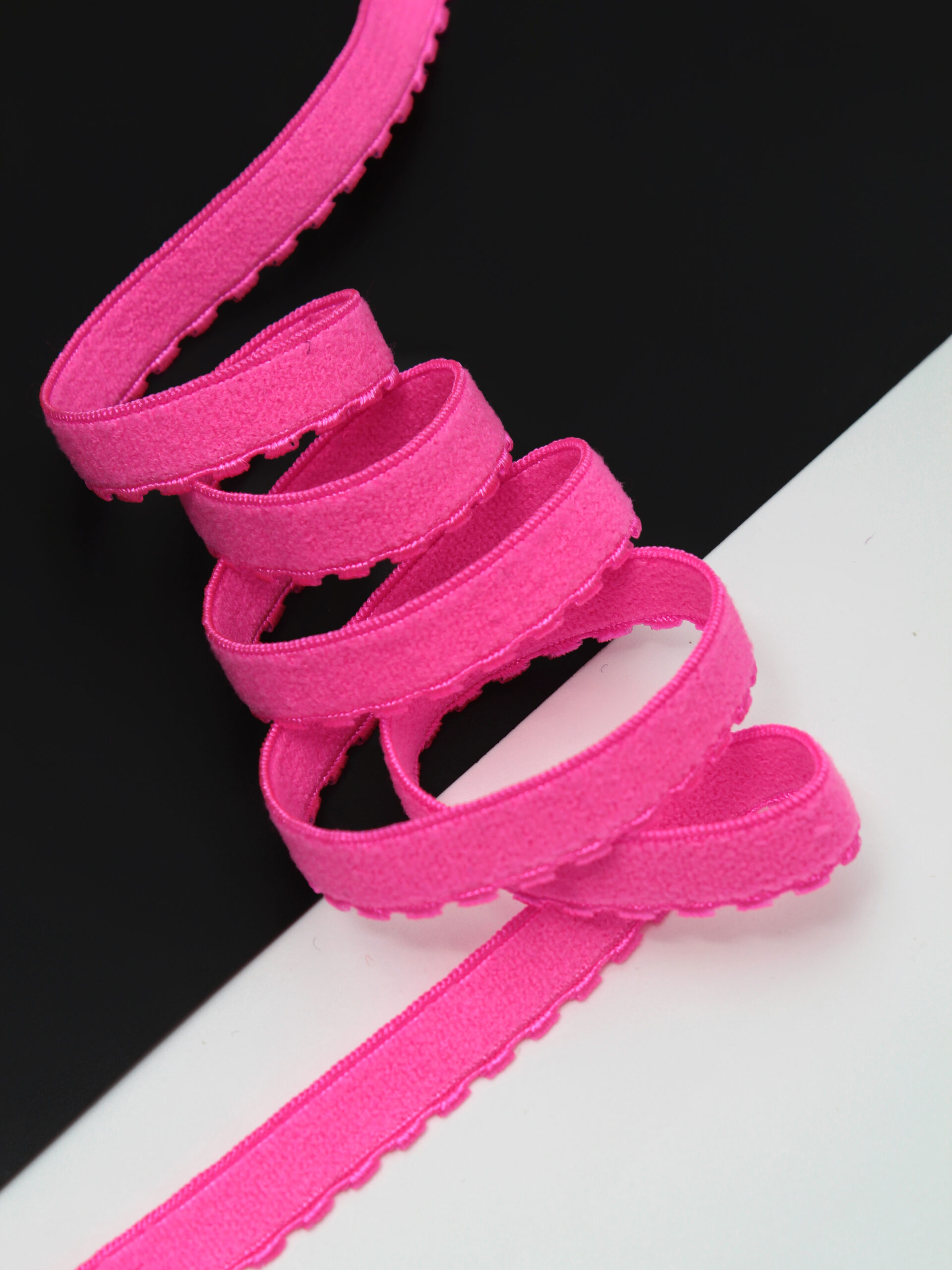 Резинка становая ярко-розовая неоновая используется при пошиве нижнего белья для отделки бюстгальтера, создания талии и обеспечения плотной посадки изделия.