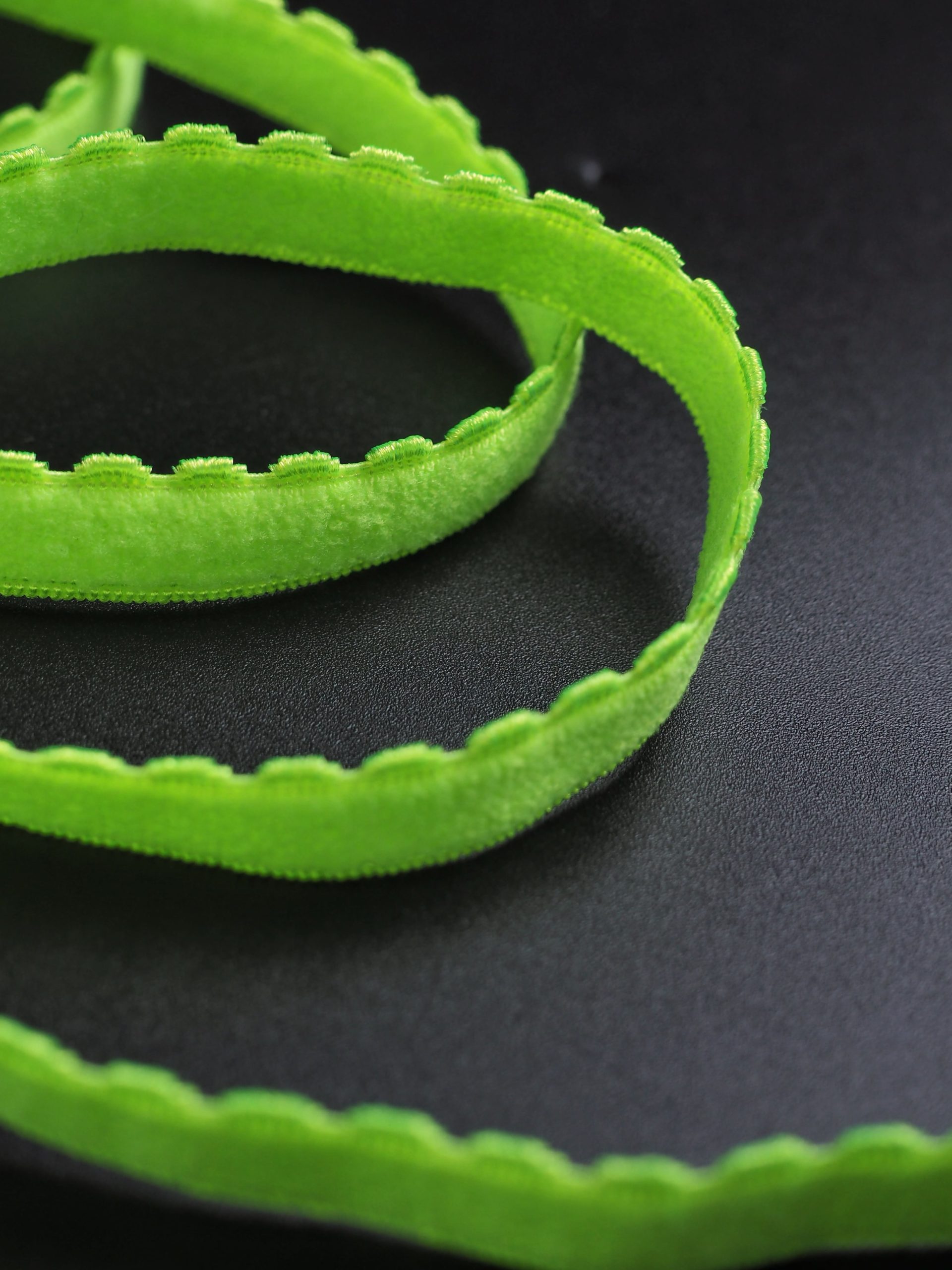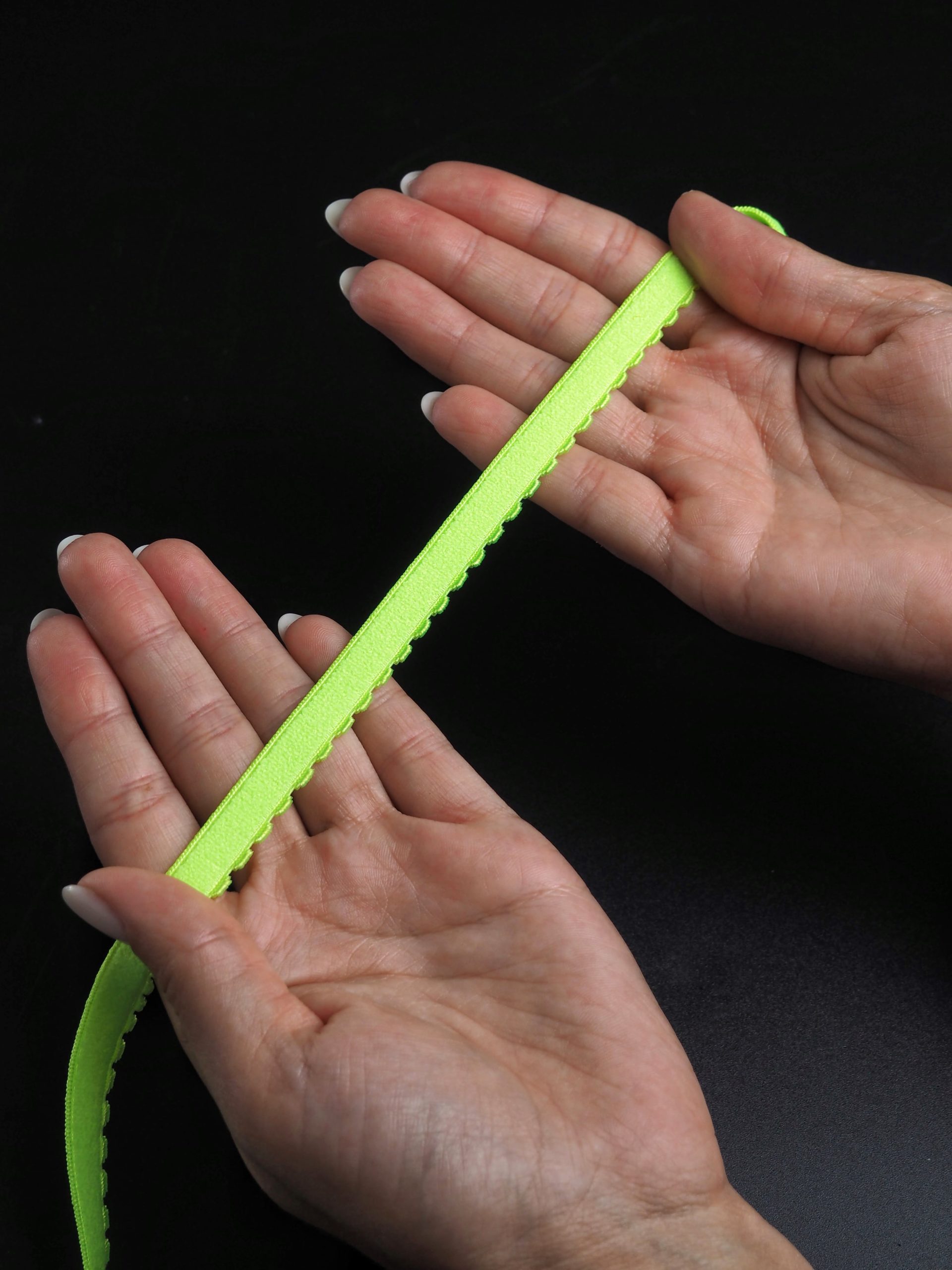Резинка становая желто-зеленая неоновая используется при пошиве нижнего белья для отделки бюстгальтера, создания талии и обеспечения плотной посадки изделия.