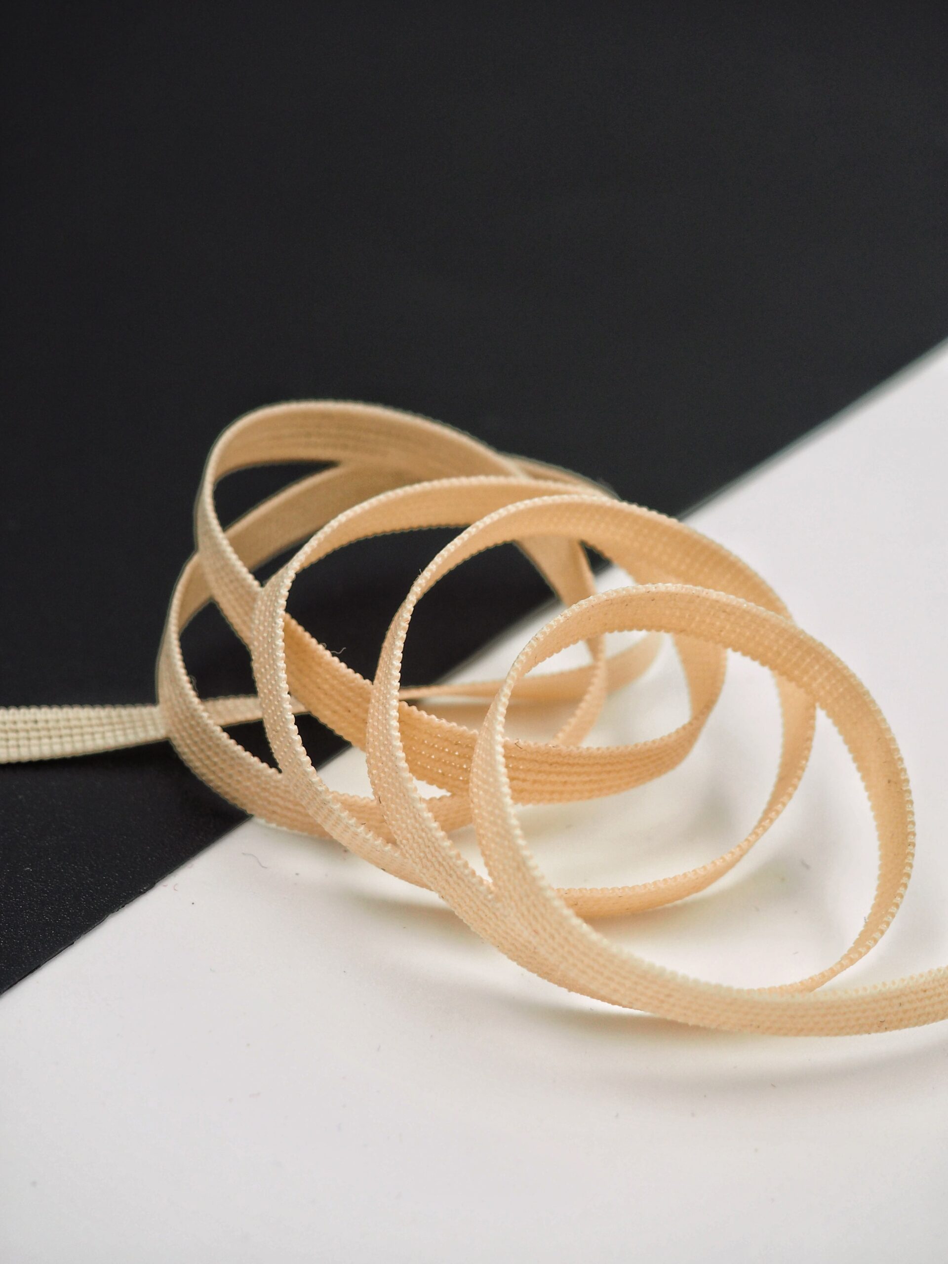 Резинка узкая бельевая тонкая и упругая лента. Резинка узкая бельевая бежевая используется для укрепления и обработки фестона кружева.