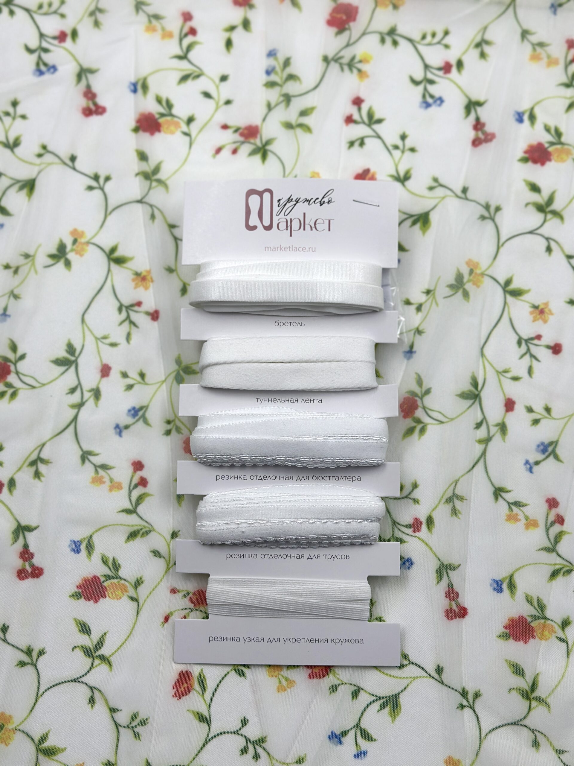 Сетка стрейч белого оттенка с цветочным разноцветным рисунком бельевая.