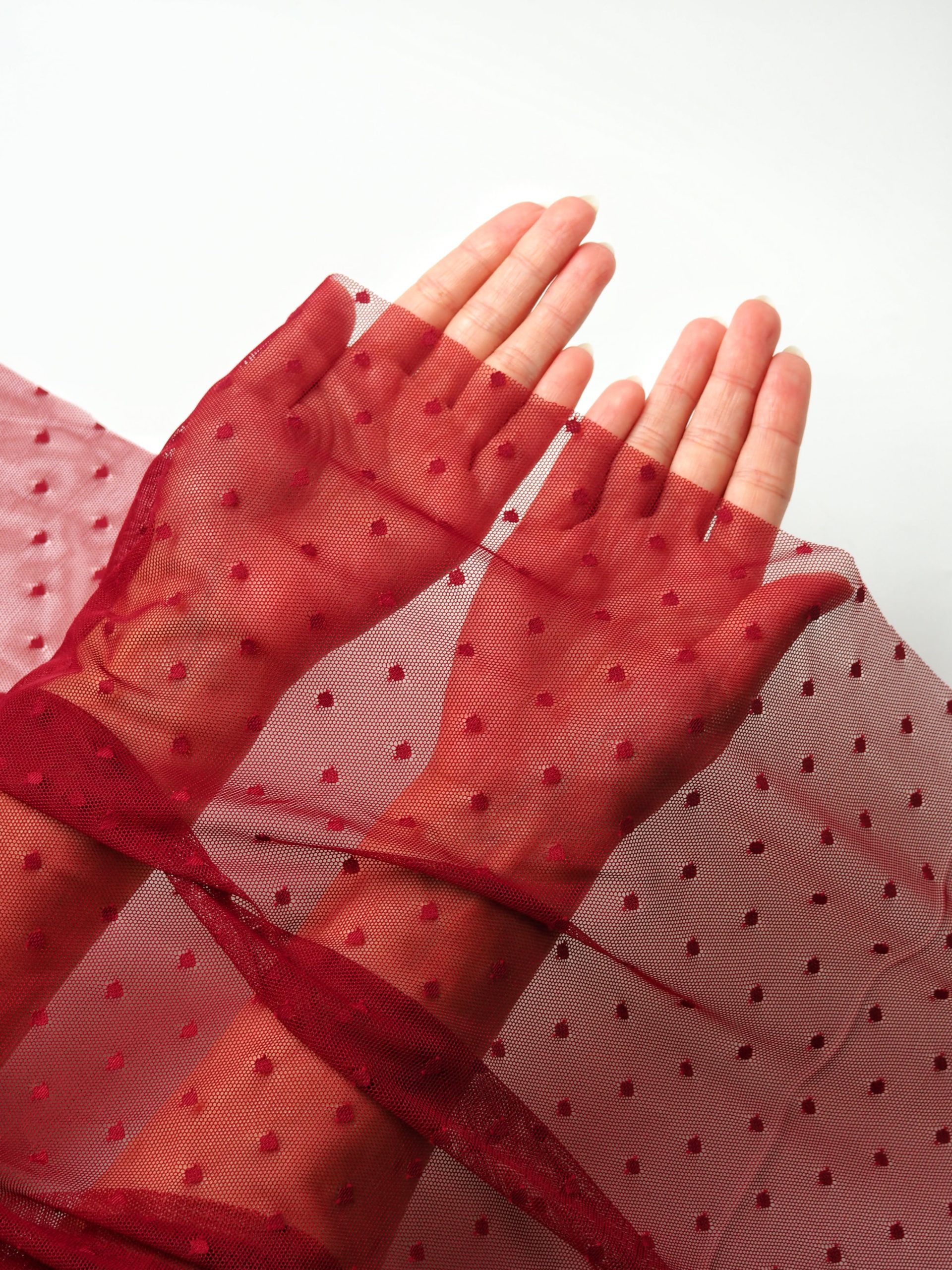 Сетка стрейч в горох бордового оттенка.