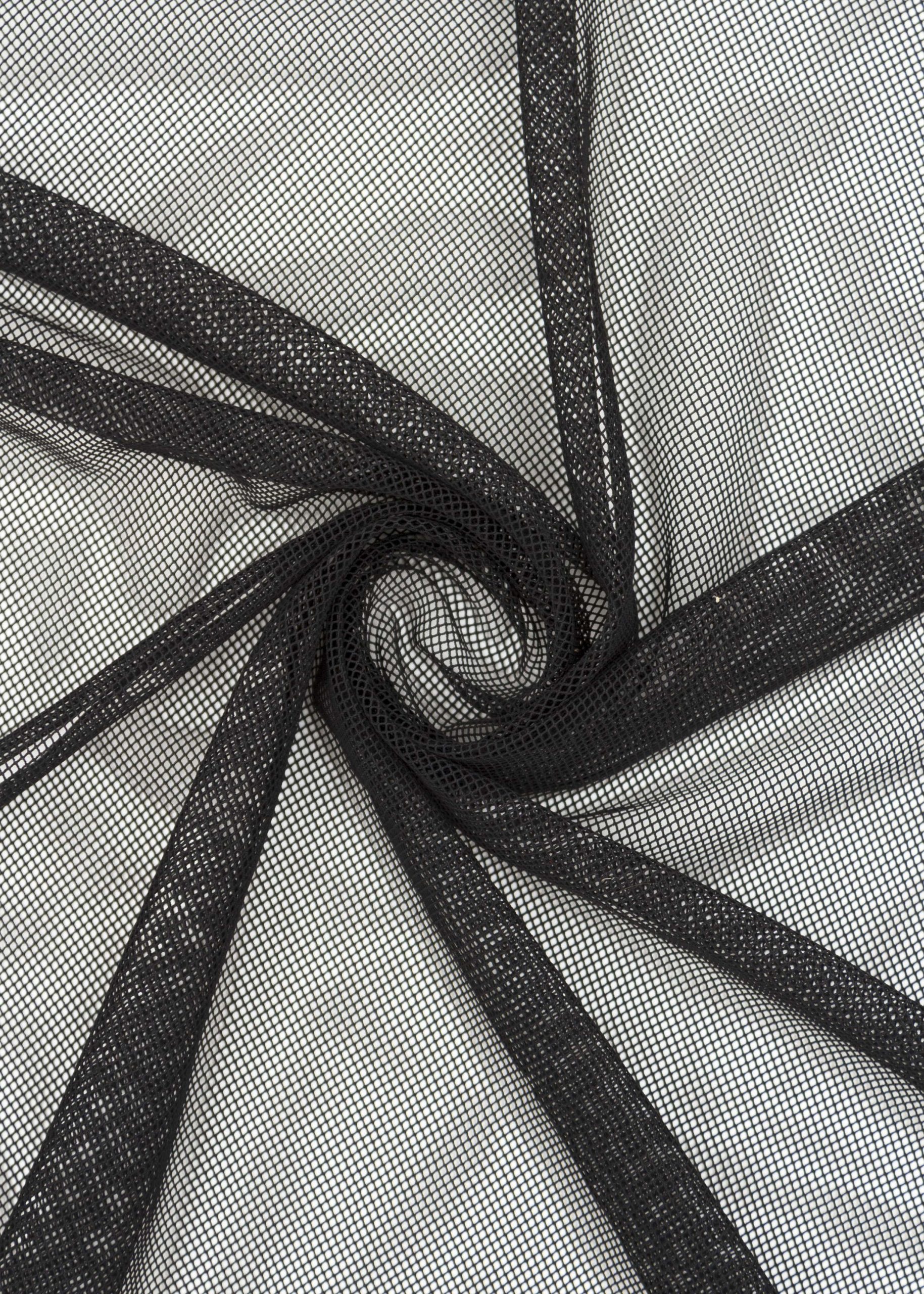 Эластичная сетка черная великолепно держит форму, хорошо тянется в обе стороны, не осыпается по краям, служит в течение многих лет. Стрейч сетка универсальный материал. Её можно использовать для пошива нижнего белья, платьев, костюмов, купальников (для вставок и подклада).