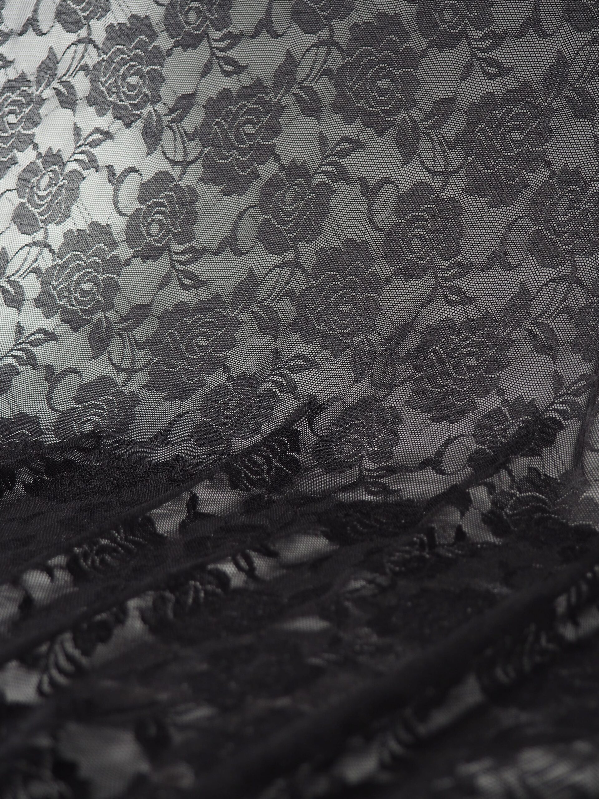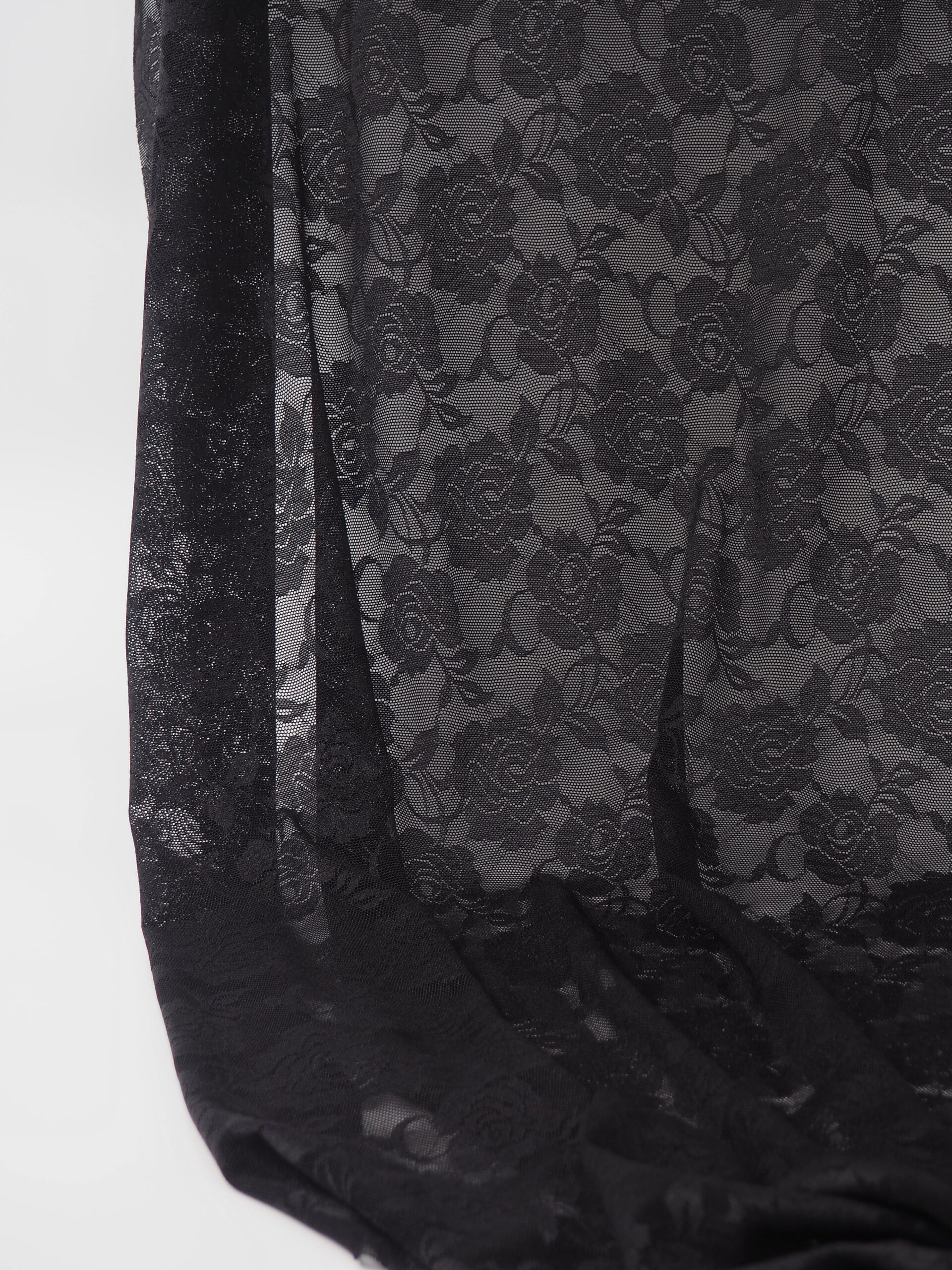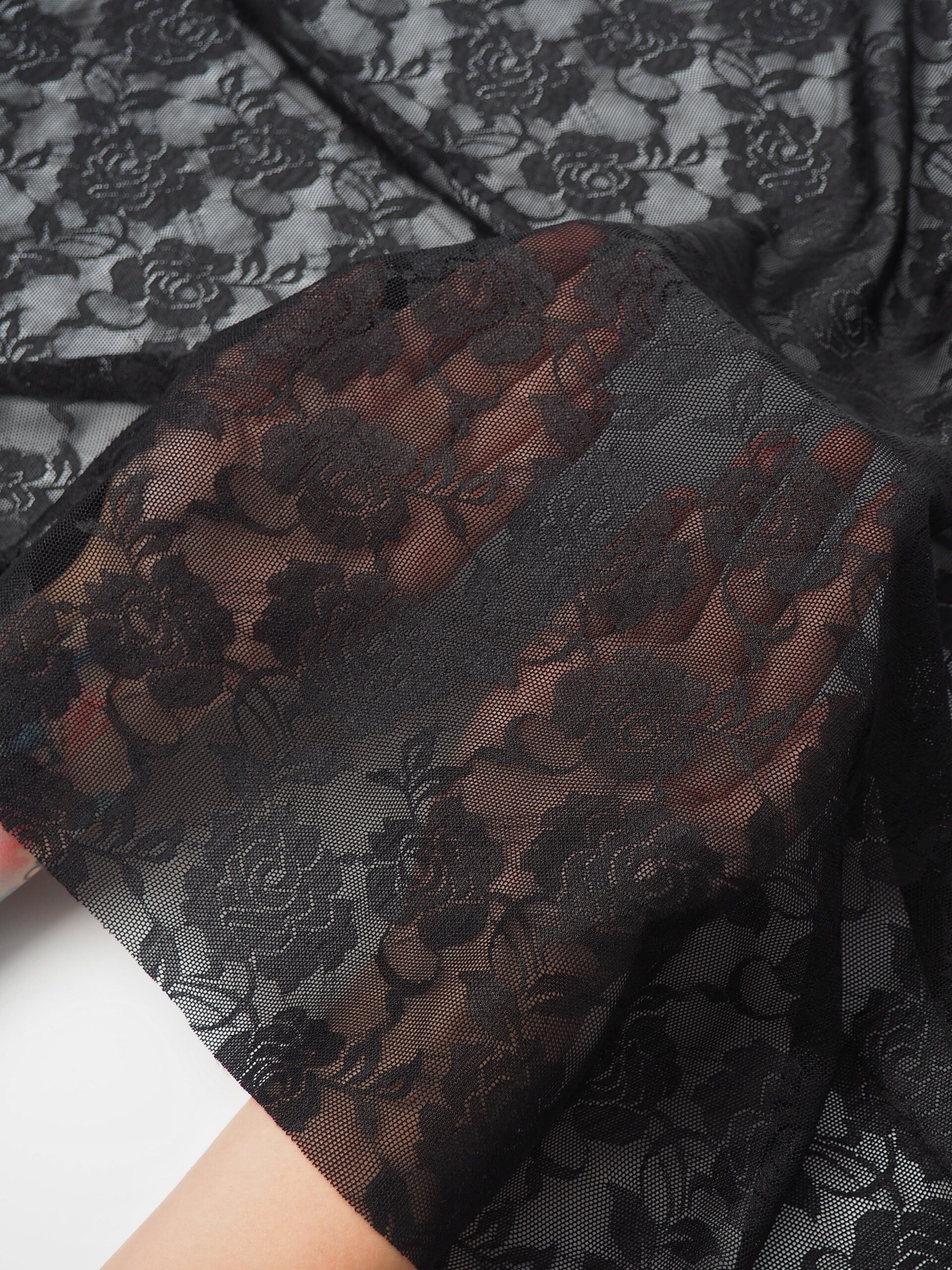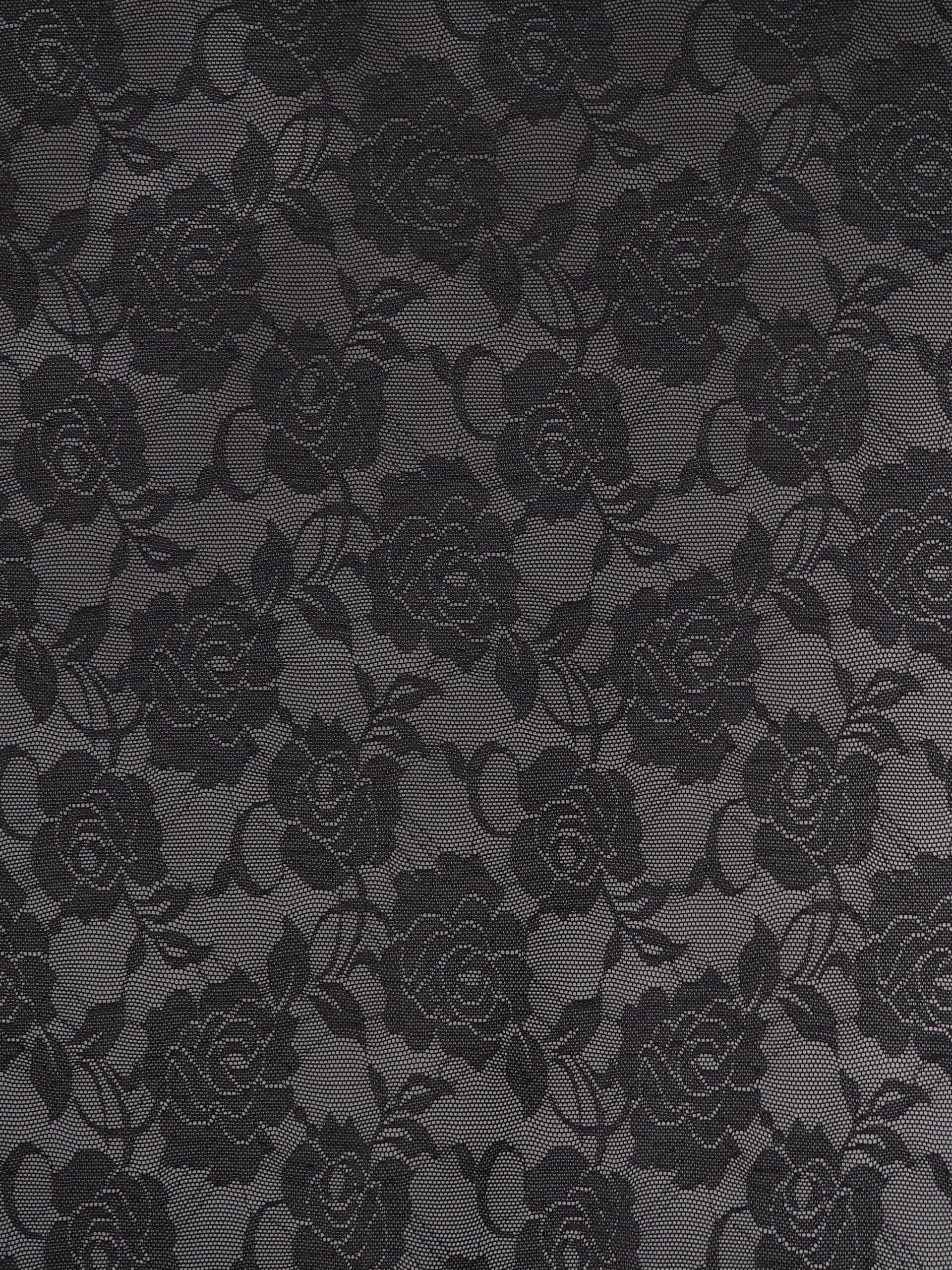 Эластичная сетка черная с цветочным принтом великолепно держит форму, хорошо тянется в одну сторону, не осыпается по краям, служит в течение многих лет. Стрейч сетка универсальный материал. Её можно использовать для пошива нижнего белья, платьев, костюмов, купальников (для вставок и подклада).