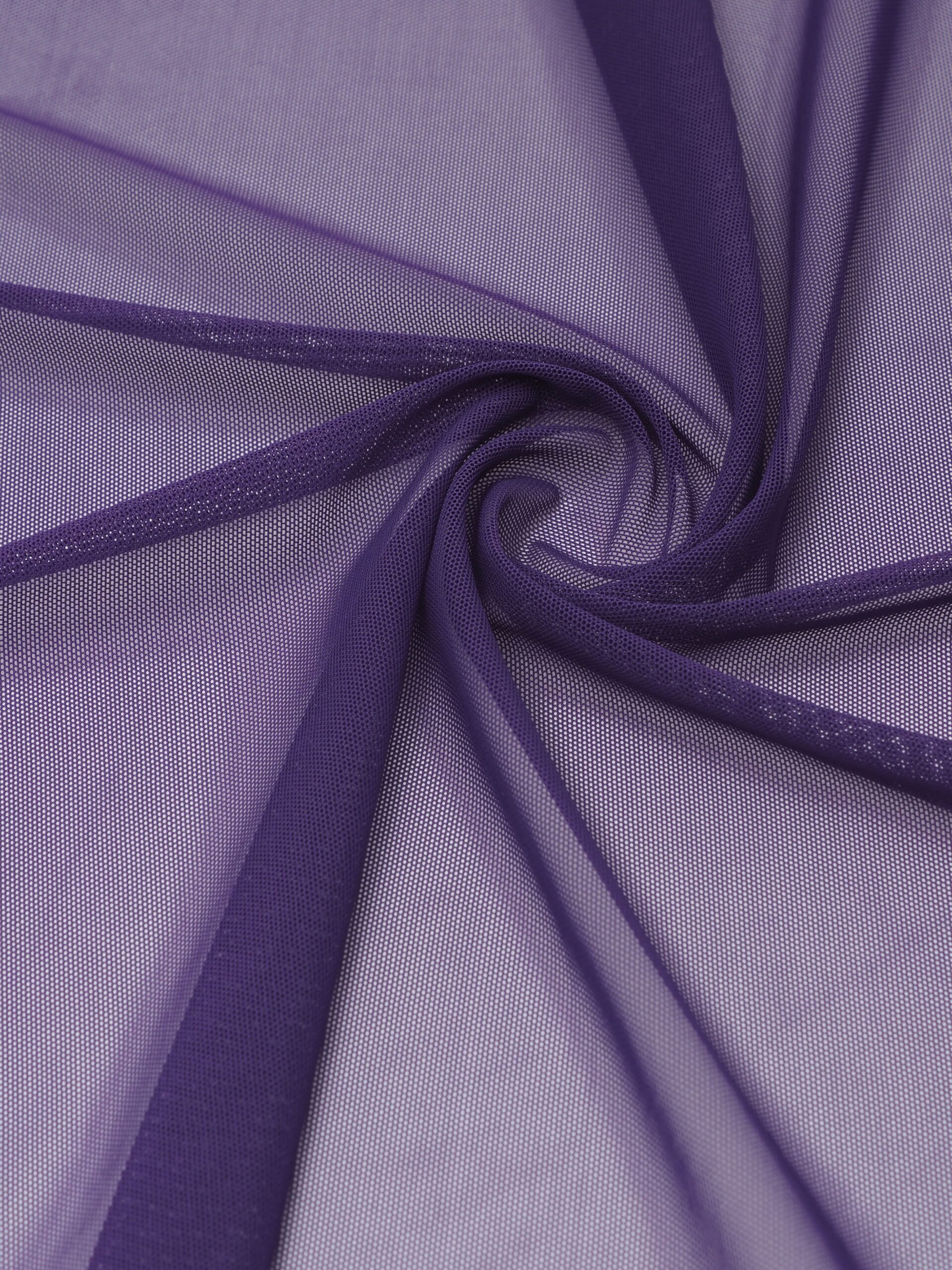 Сетка эластичная фиолетовая великолепно держит форму, хорошо тянется в обе стороны, не осыпается по краям, служит в течение многих лет. Стрейч сетка универсальный материал. Её можно использовать для пошива нижнего белья, платьев, костюмов, купальников (для вставок и подклада).