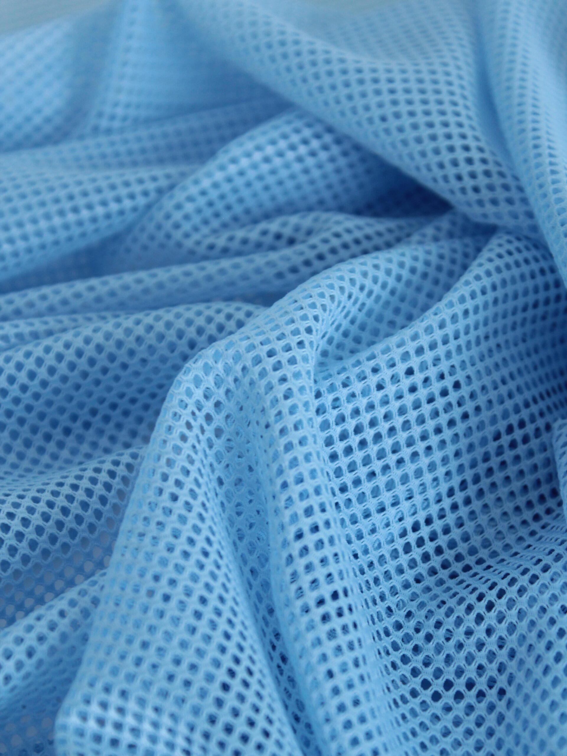 Эластичная сетка голубая крупная ячейка великолепно держит форму, хорошо тянется в одну сторону, не осыпается по краям, служит в течение многих лет. Стрейч сетка универсальный материал. Её можно использовать для пошива нижнего белья, платьев, костюмов, купальников (для вставок и подклада).