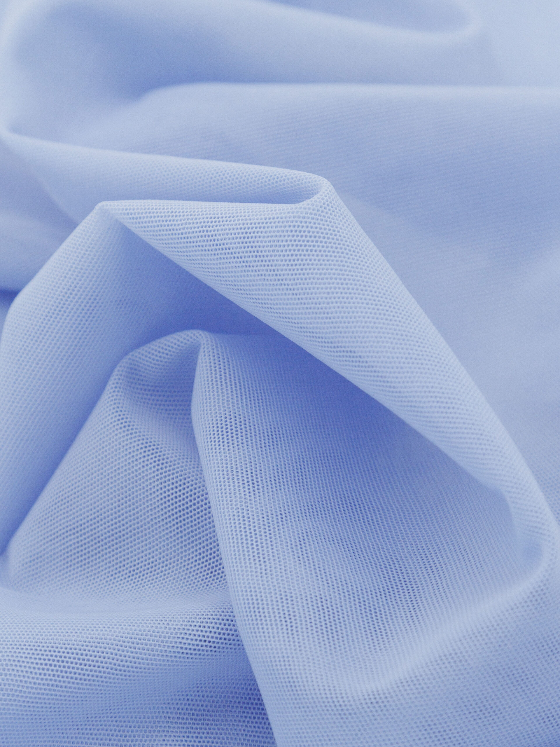 Эластичная сетка голубая великолепно держит форму, хорошо тянется в обе стороны, не осыпается по краям, служит в течение многих лет. Стрейч сетка универсальный материал. Её можно использовать для пошива нижнего белья, платьев, костюмов, купальников (для вставок и подклада).