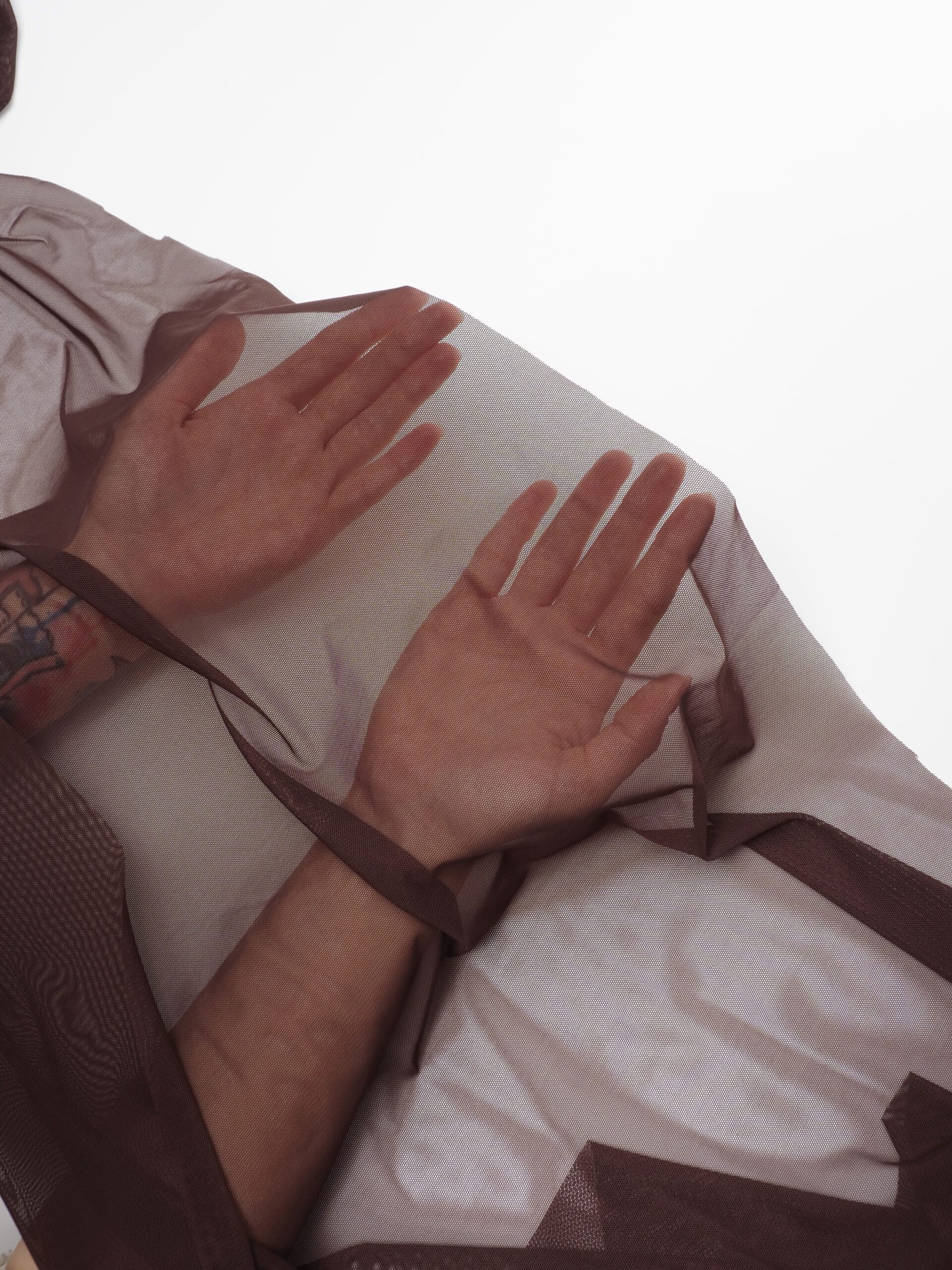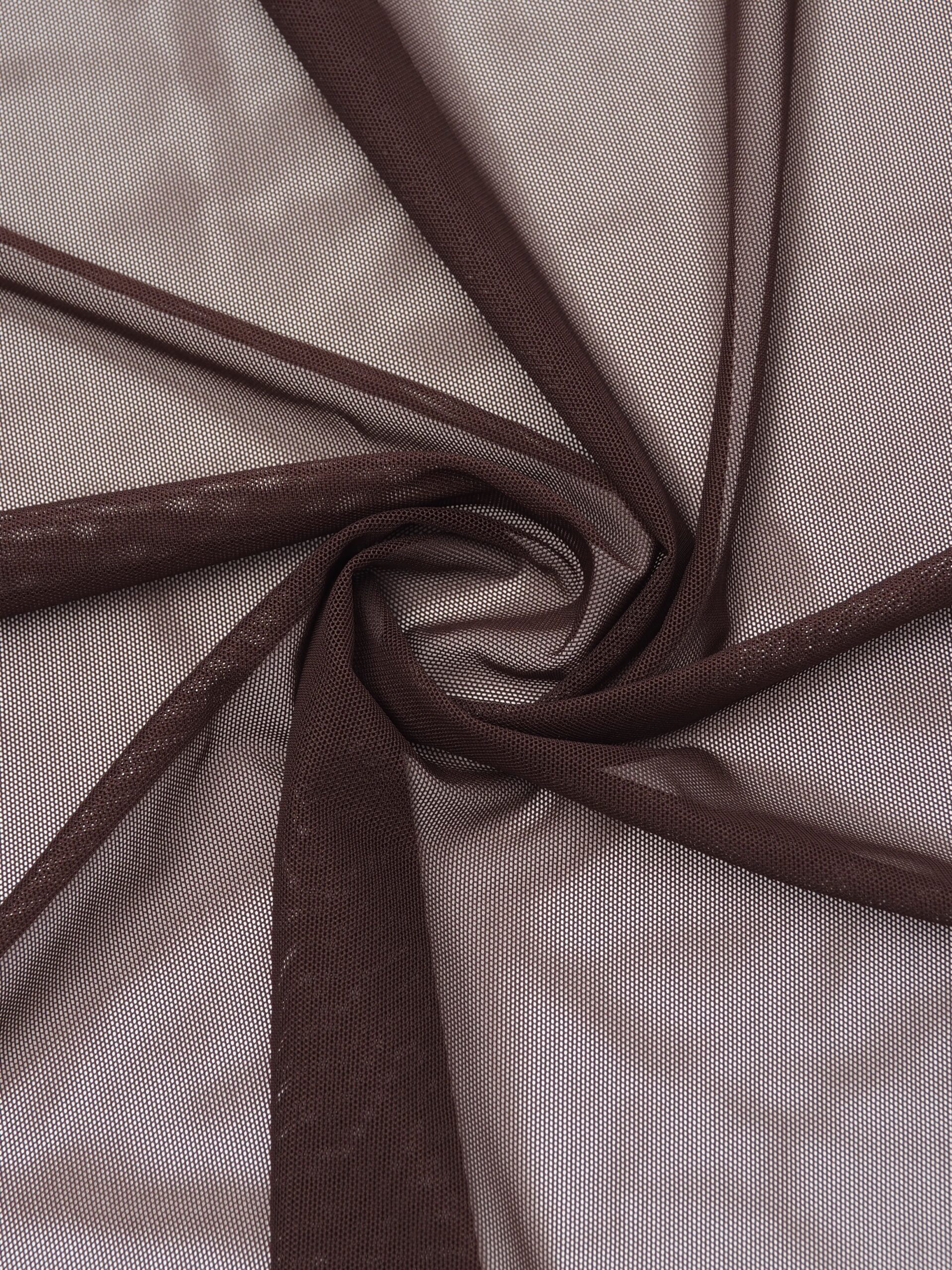 Эластичная сетка шоколад великолепно держит форму, хорошо тянется в обе стороны, не осыпается по краям, служит в течение многих лет. Стрейч сетка универсальный материал. Её можно использовать для пошива нижнего белья, платьев, костюмов, купальников (для вставок и подклада).