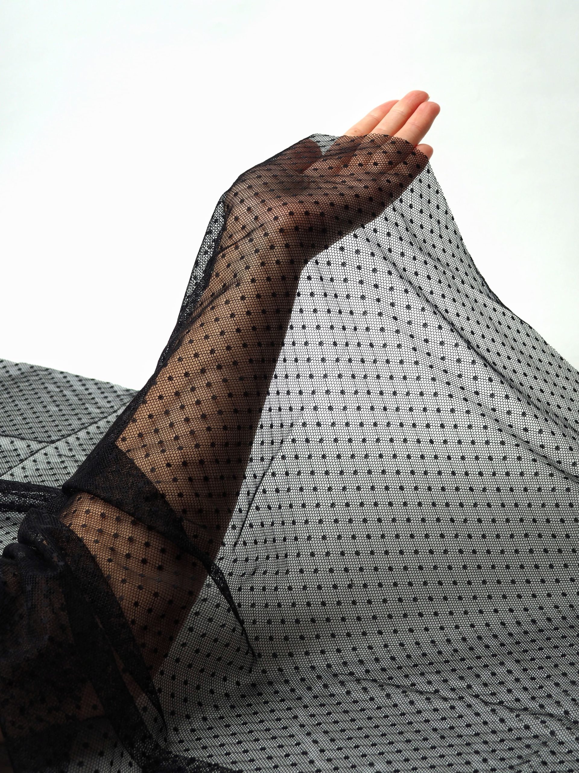Сетка стрейч горох в ромбик черного оттенка бельевая.