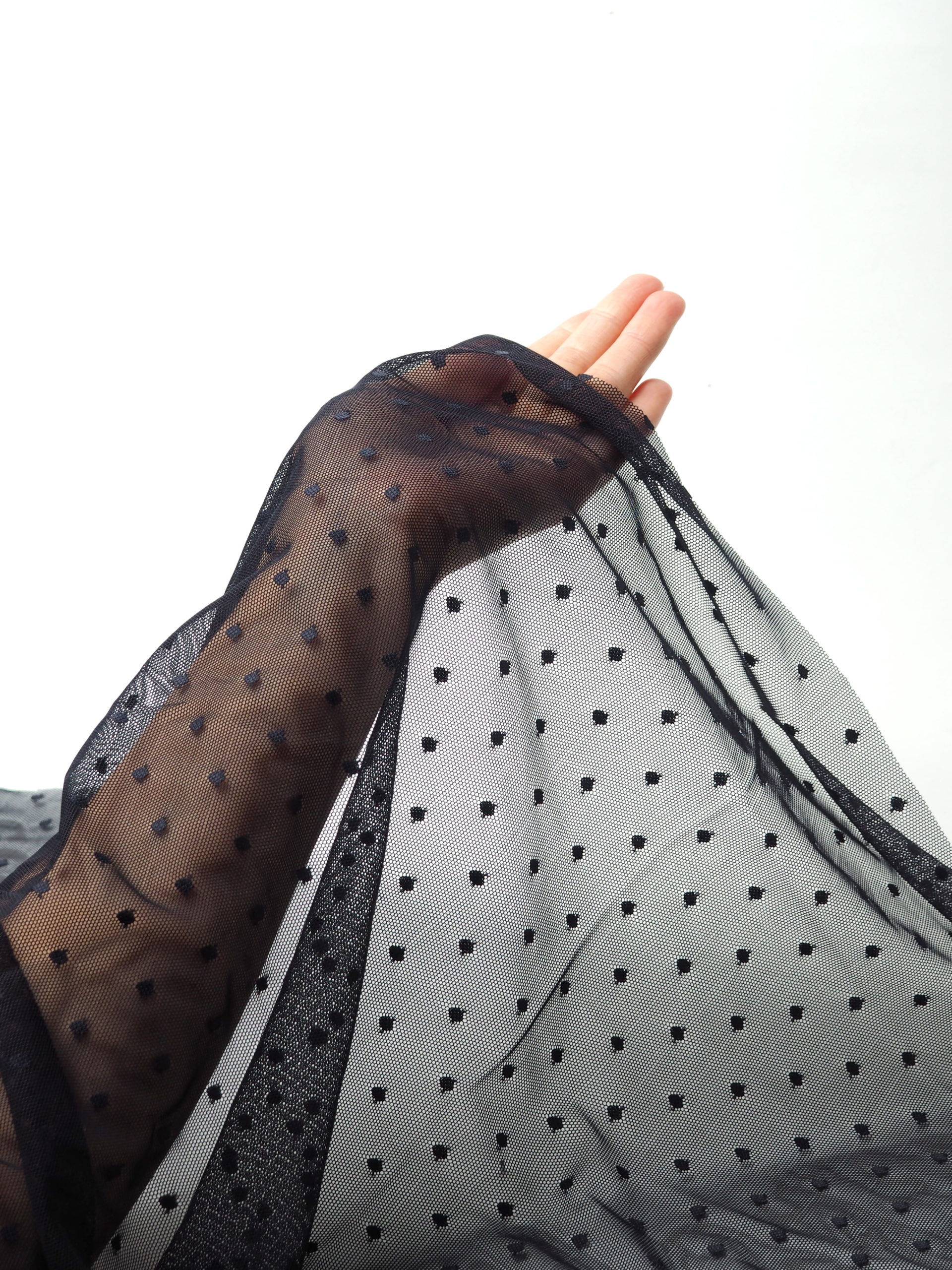 Эластичная сетка иссиня-черная великолепно держит форму, хорошо тянется в обе стороны, не осыпается по краям, служит в течение многих лет. Стрейч сетка универсальный материал. Её можно использовать для пошива нижнего белья, платьев, костюмов, купальников (для вставок и подклада).