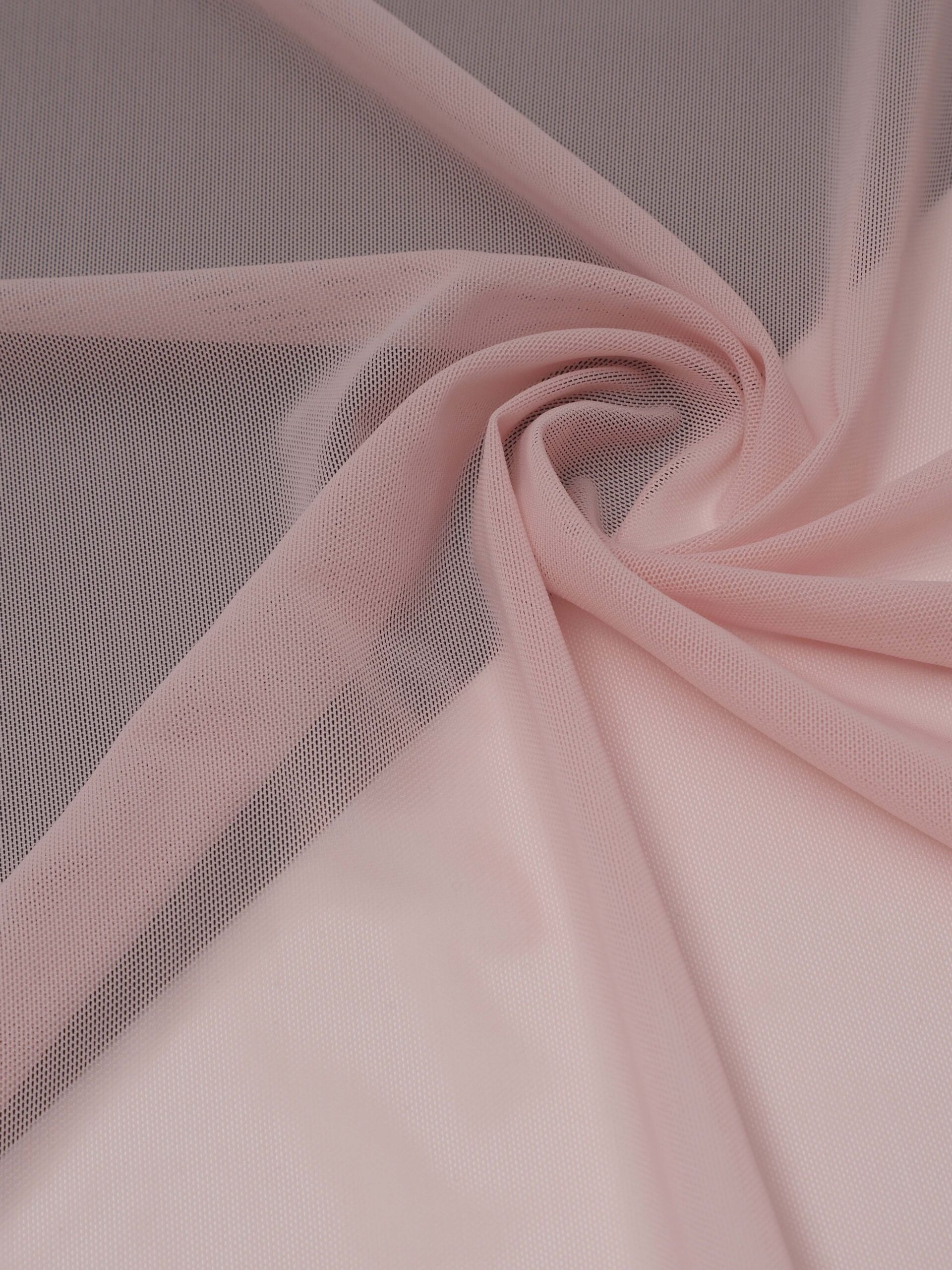 Эластичная сетка пудровая (лотос) великолепно держит форму, хорошо тянется в обе стороны, не осыпается по краям, служит в течение многих лет. Стрейч сетка универсальный материал. Её можно использовать для пошива нижнего белья, платьев, костюмов, купальников (для вставок и подклада).