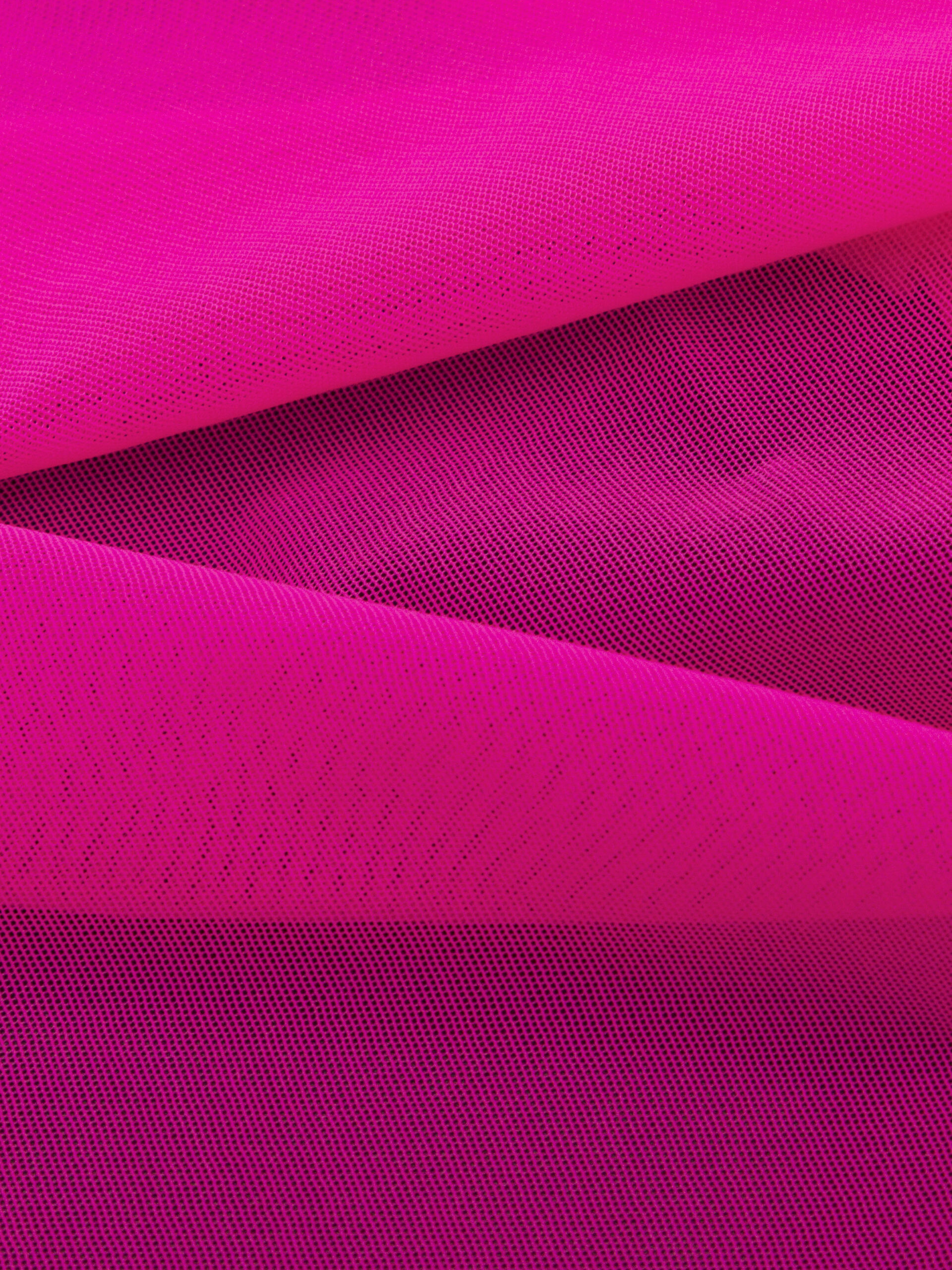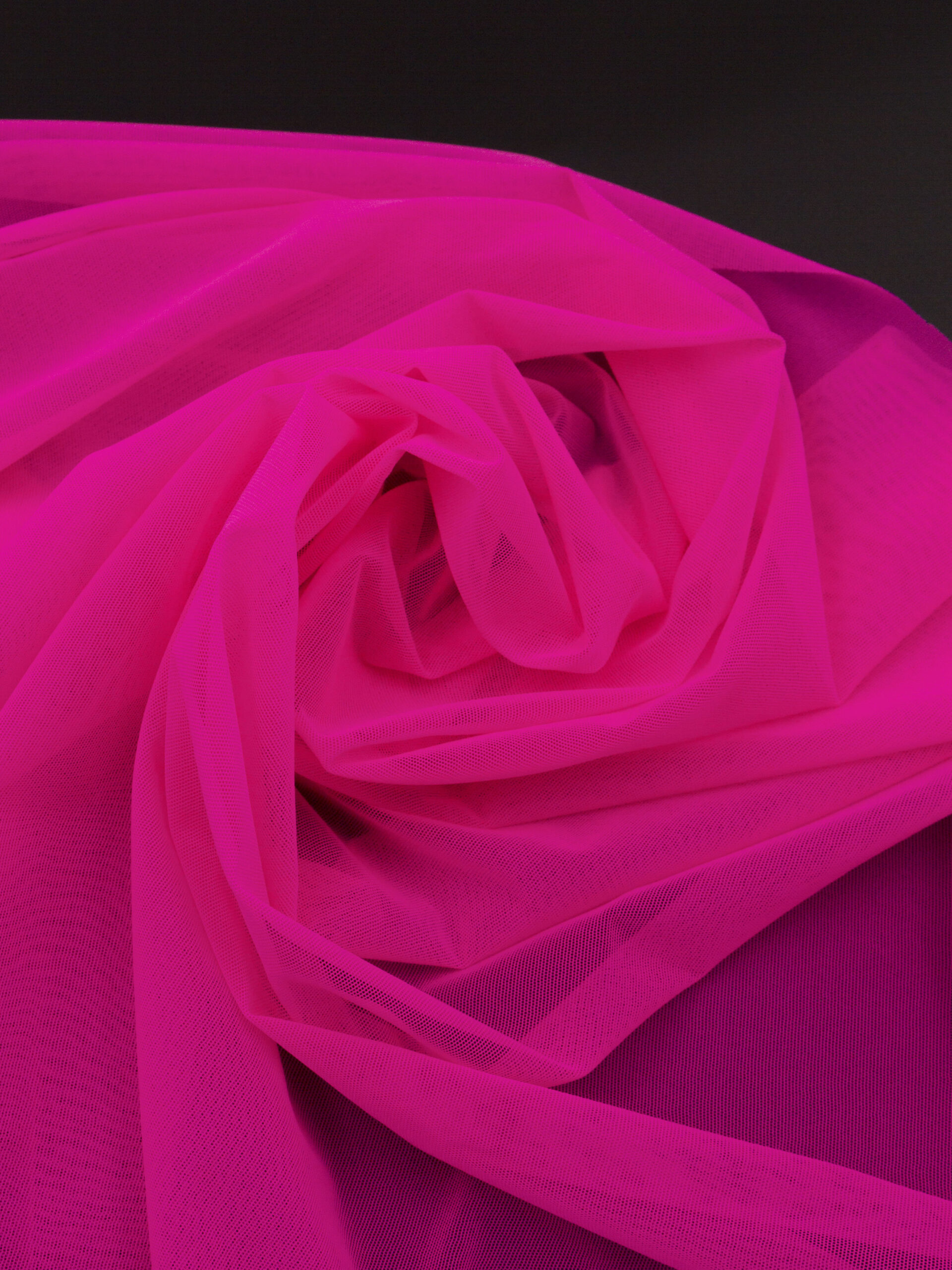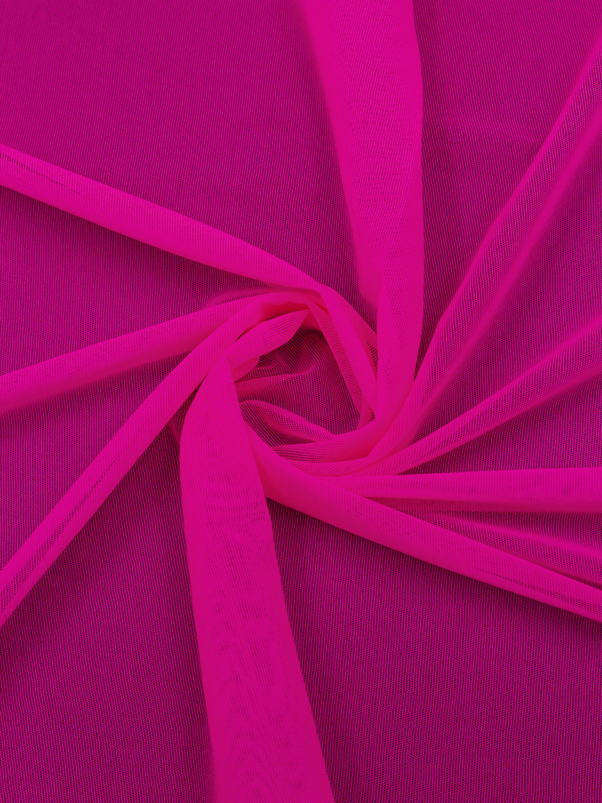 Эластичная сетка розовая неоновая великолепно держит форму, хорошо тянется в обе стороны, не осыпается по краям, служит в течение многих лет. Стрейч сетка универсальный материал. Её можно использовать для пошива нижнего белья, платьев, костюмов, купальников (для вставок и подклада).