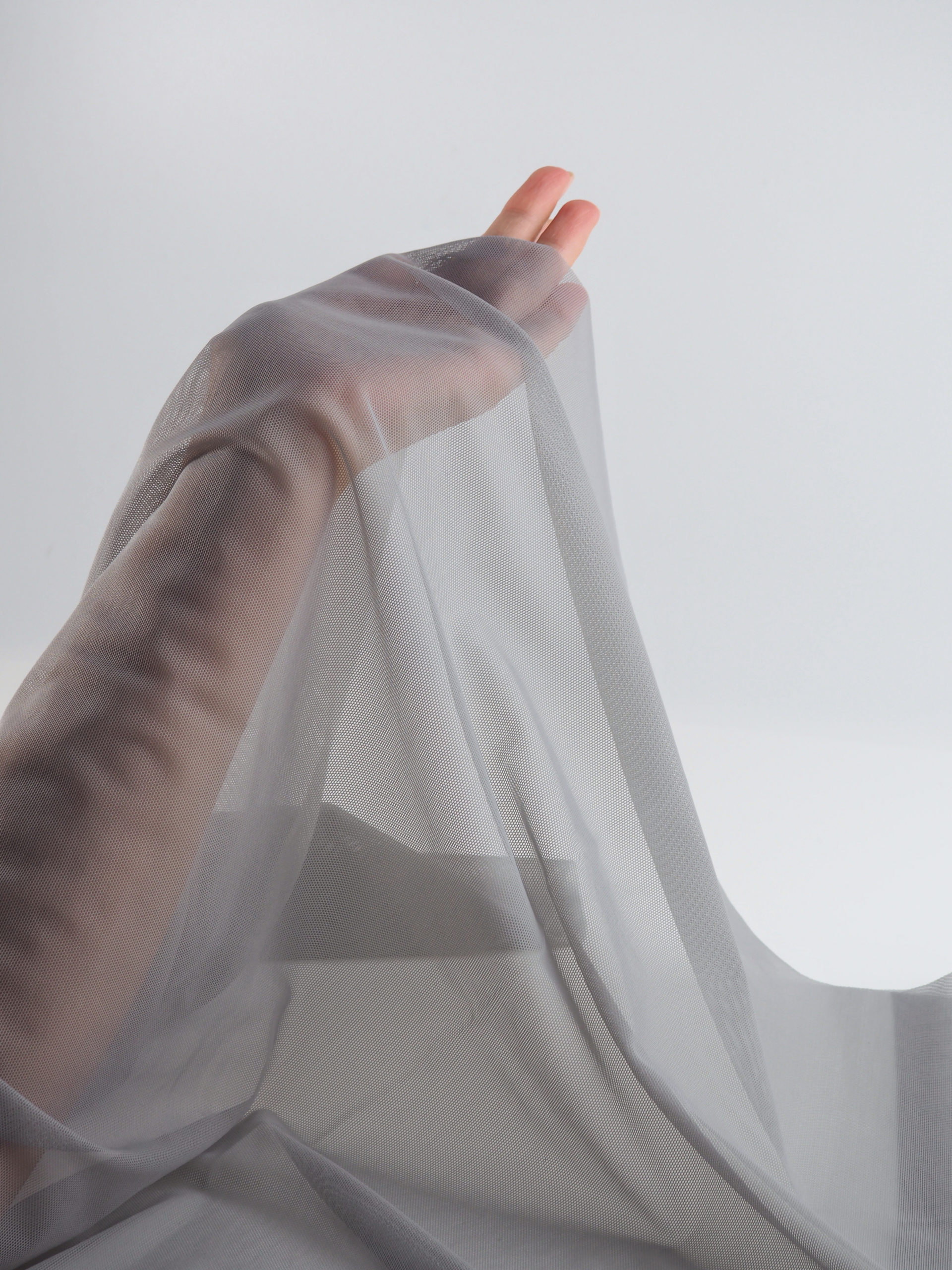 Эластичная сетка серая великолепно держит форму, хорошо тянется в обе стороны, не осыпается по краям, служит в течение многих лет. Стрейч сетка универсальный материал. Её можно использовать для пошива нижнего белья, платьев, костюмов, купальников (для вставок и подклада).