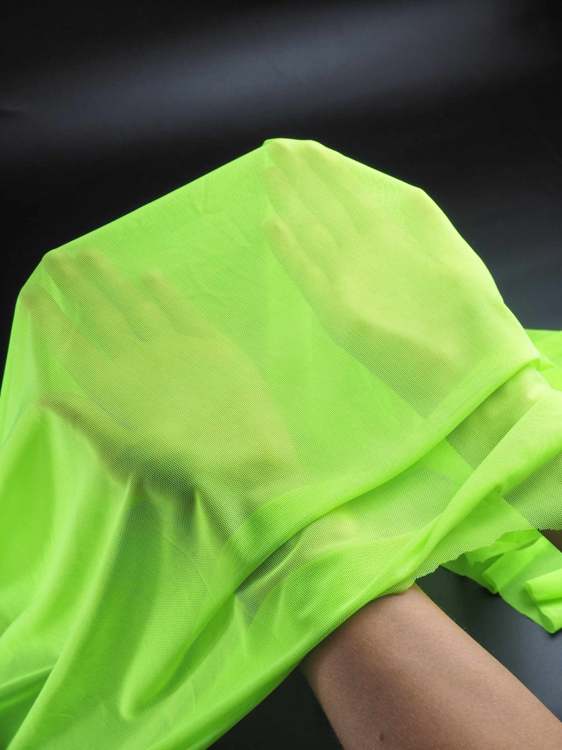 Сетка эластичная желто-зеленая неоновая великолепно держит форму, хорошо тянется в обе стороны, не осыпается по краям, служит в течение многих лет. Стрейч сетка универсальный материал. Её можно использовать для пошива нижнего белья, платьев, костюмов, купальников (для вставок и подклада).