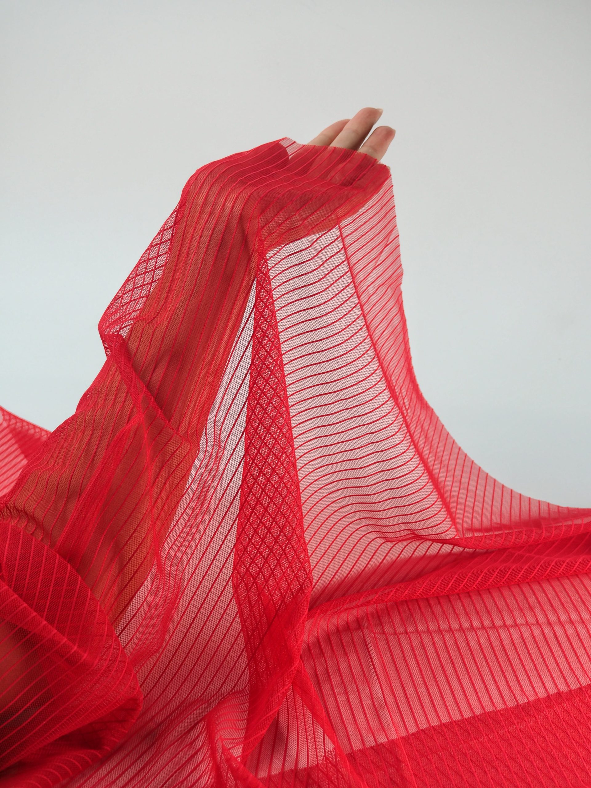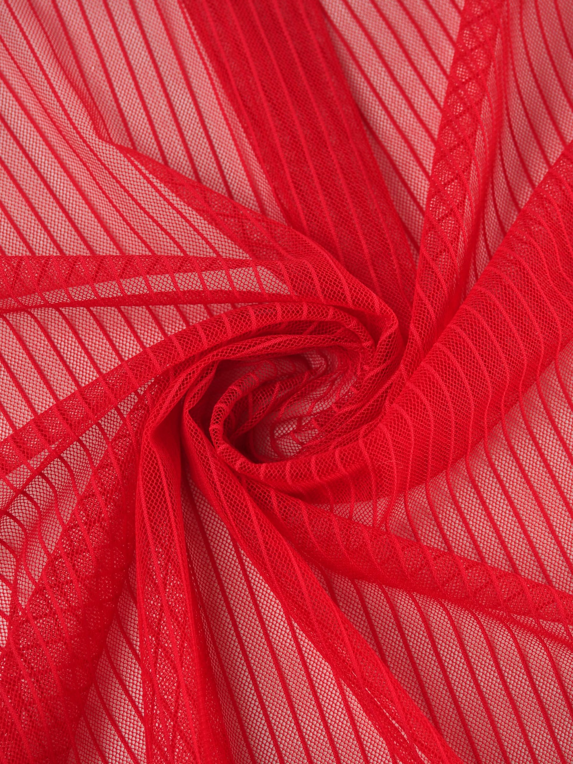 Сетка мало эластичная в полоску красного оттенка бельевая.