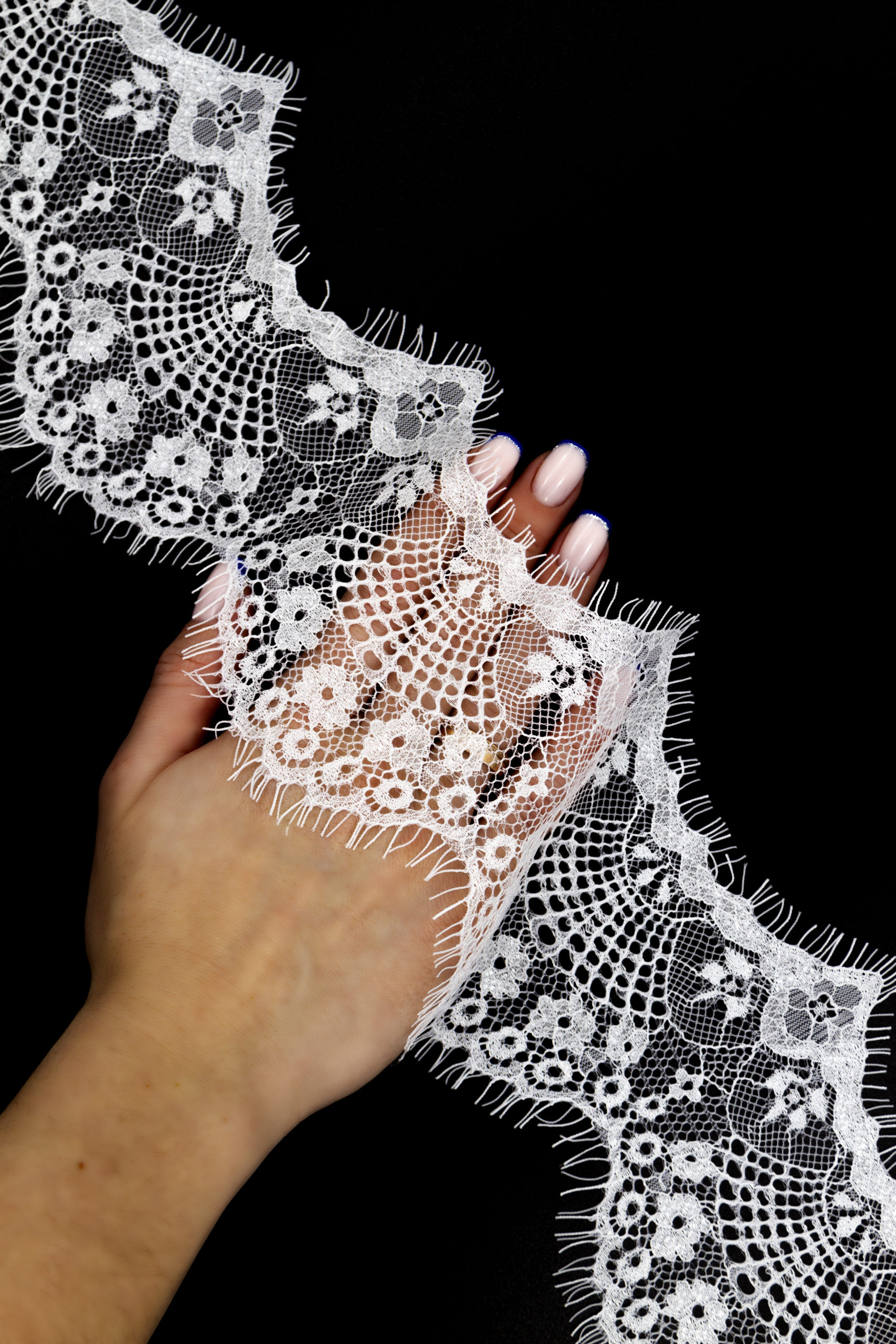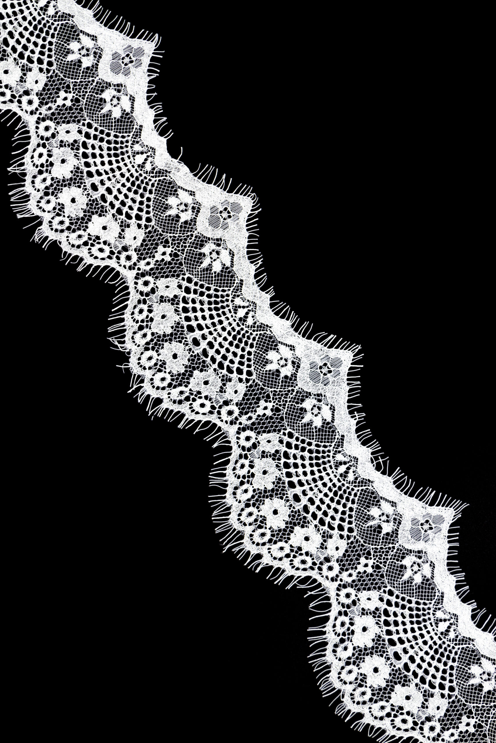 Кружево шантильи узкое с ресничками неэластичное купоном. Цветочный рисунок.