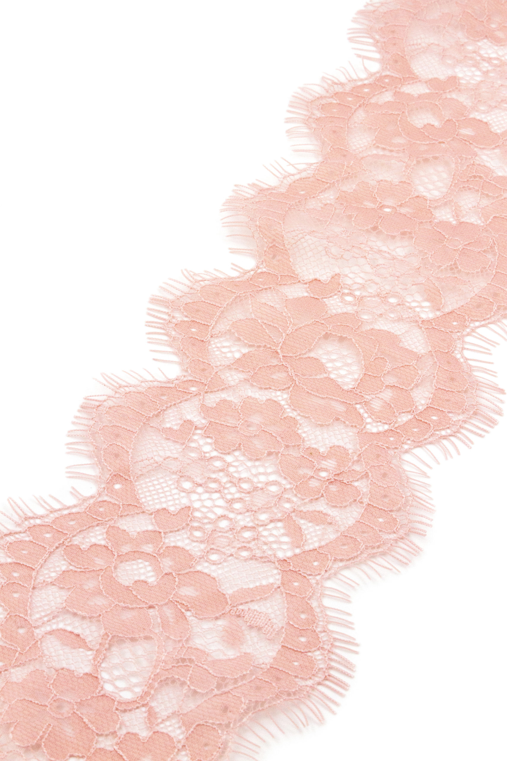 Кружево шантильи узкое с ресничками неэластичное купоном. Абстрактный рисунок.