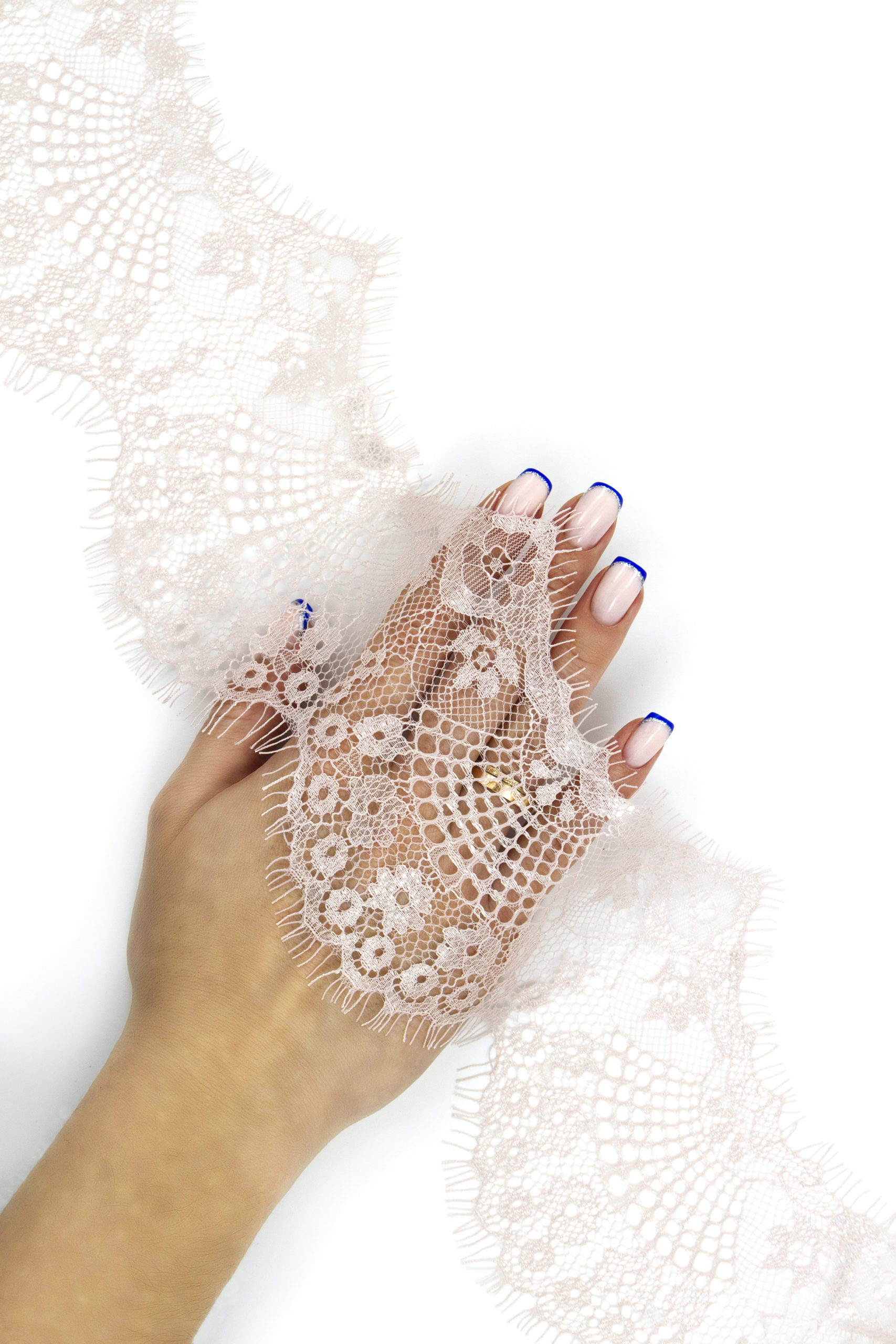 Кружево шантильи узкое с ресничками неэластичное купоном. Цветочный рисунок.