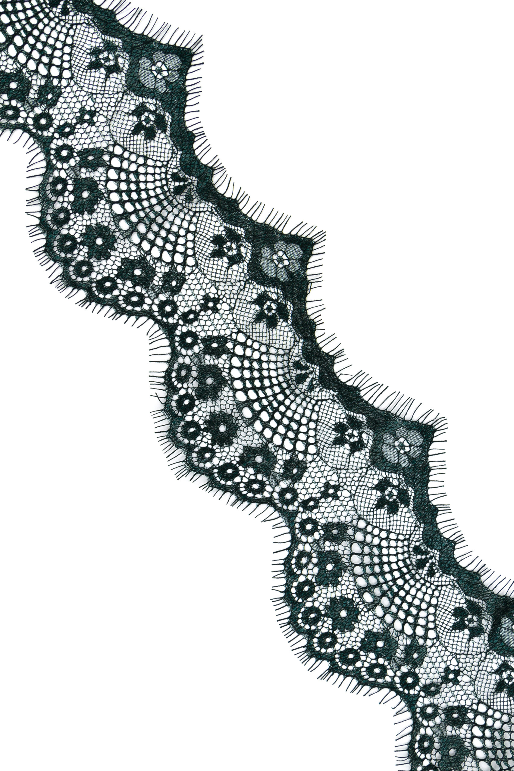Кружево шантильи узкое с ресничками неэластичное купоном. Цветочный рисунок.