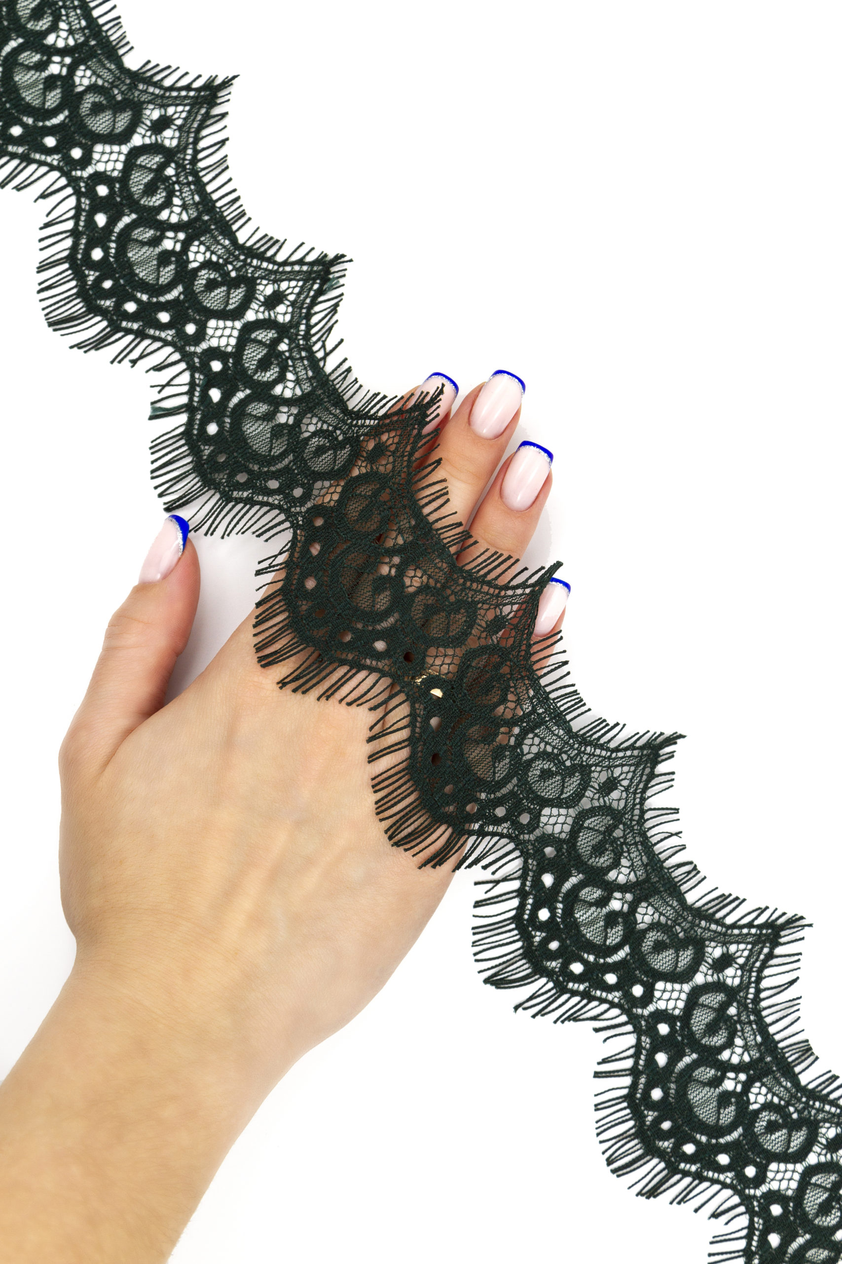 Кружево шантильи узкое с ресничками неэластичное купоном. Абстрактный рисунок.
