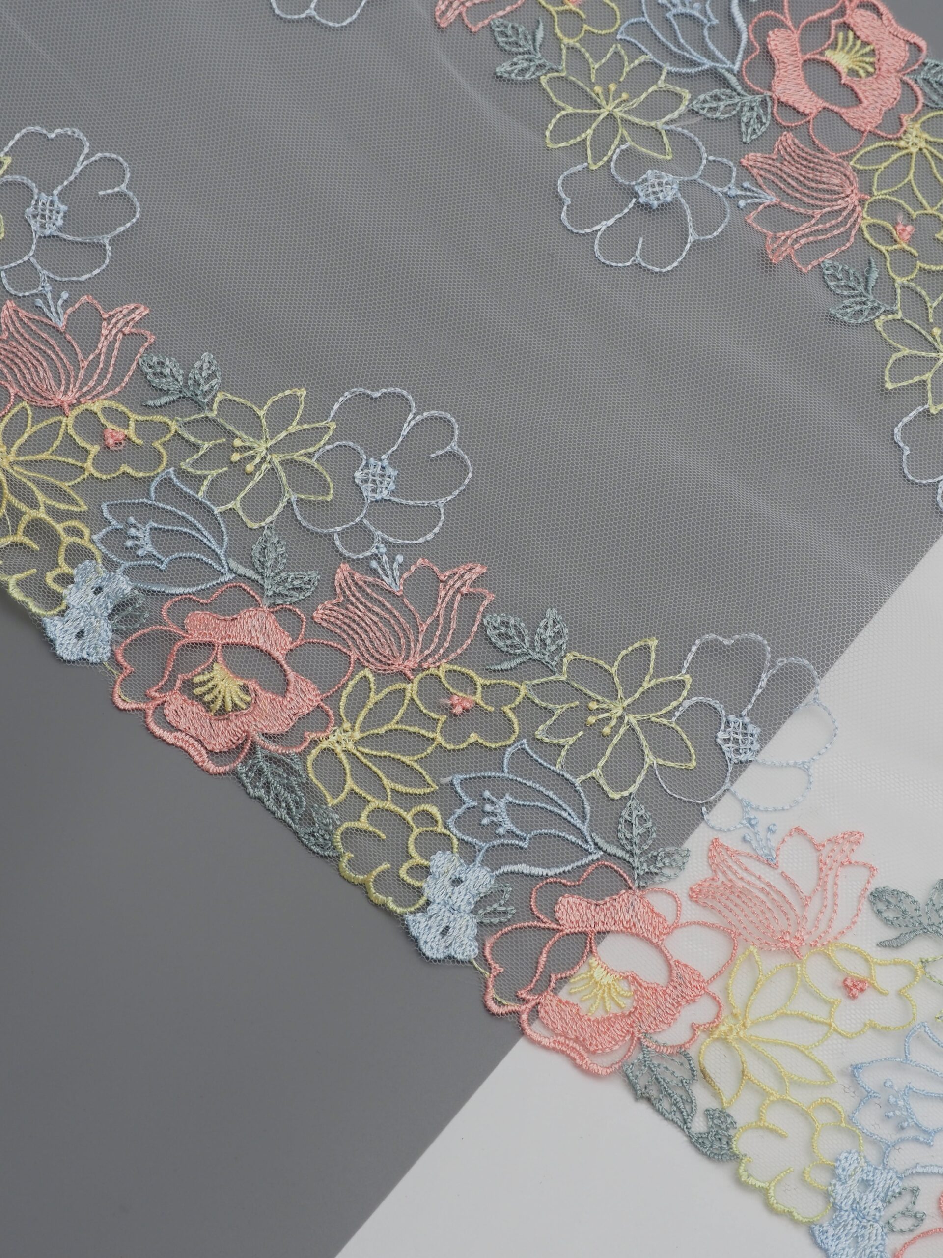 Вышивка на сетке белая с мультиколор - удобная и красивая ткань для создания оригинального декора. Готовая основа с кружевными узорами и орнаментами - настоящая помощь рукодельницам. Вышивка на сетке великолепно держит форму, не осыпается по краям, отлично драпируется, отличается высокой прочностью на разрыв, весит очень мало, служит в течение многих лет. Используя кружево на сетке, вы легко создадите эффектное эксклюзивное изделие. Материал считается универсальным. Его можно использовать в пошиве нижнего белья, кофты, юбки, блузки, вечернего и свадебного платья.