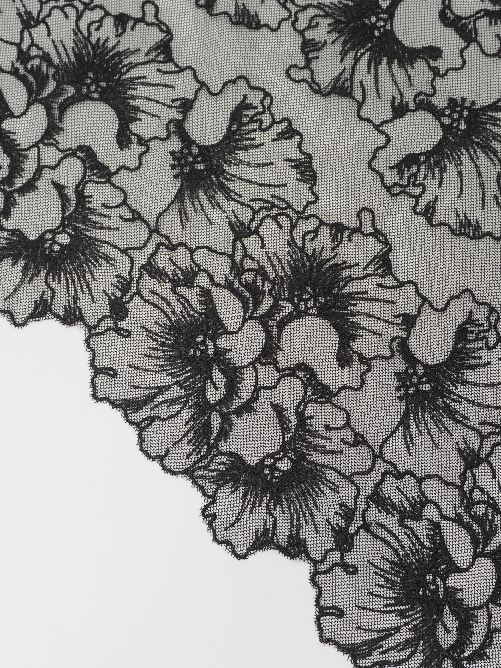 Вышивка на сетке черная - удобная и красивая ткань для создания оригинального декора. Готовая основа с кружевными узорами и орнаментами - настоящая помощь рукодельницам. Вышивка на сетке великолепно держит форму, не осыпается по краям, отлично драпируется, отличается высокой прочностью на разрыв, весит очень мало, служит в течение многих лет. Используя кружево на сетке, вы легко создадите эффектное эксклюзивное изделие. Материал считается универсальным. Его можно использовать в пошиве нижнего белья, кофты, юбки, блузки, вечернего и свадебного платья.