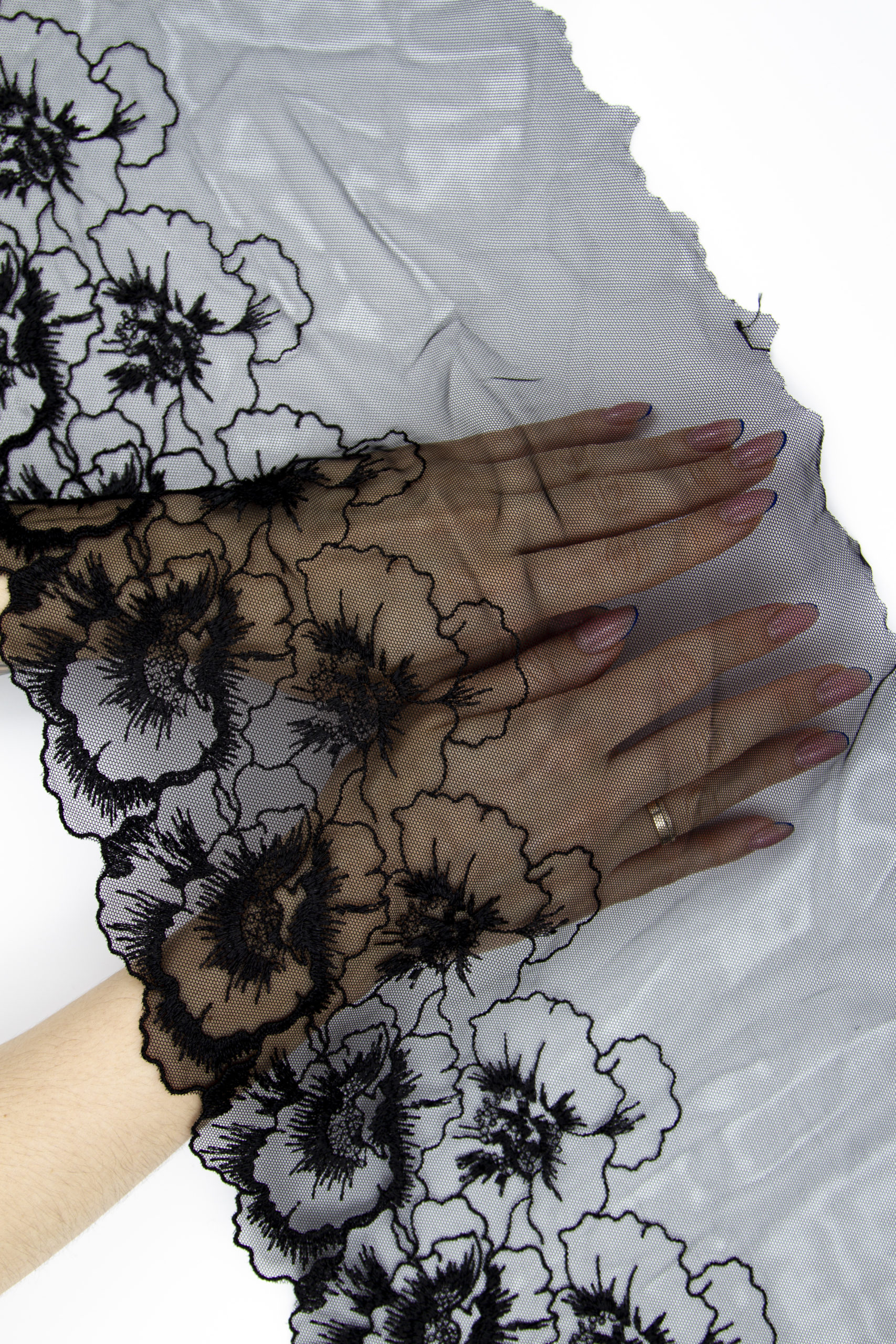 Вышивка на сетке черная ширина 27 см ОТРЕЗЫ