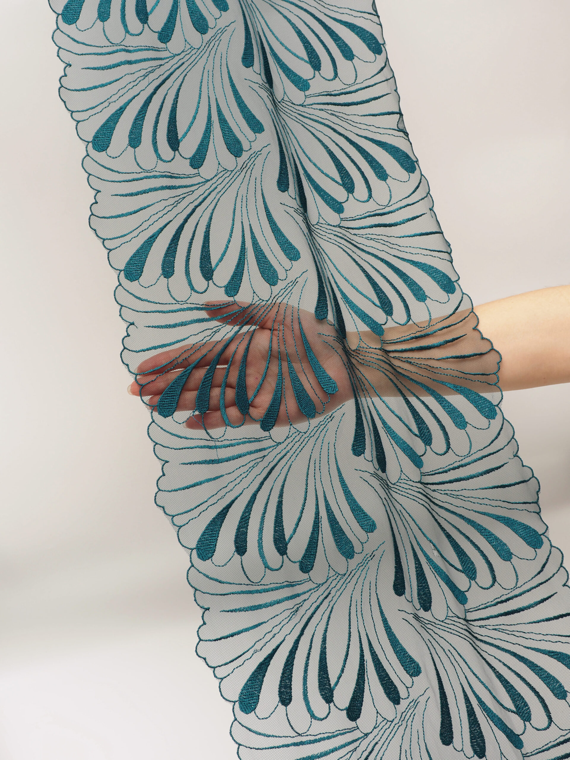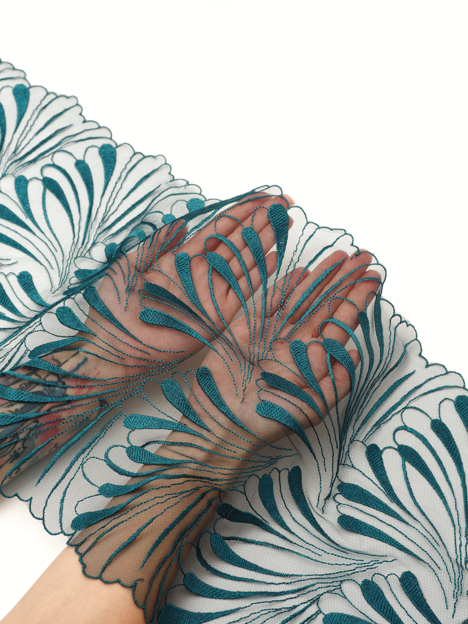 Вышивка на сетке изумруд - удобная и красивая ткань для создания оригинального декора. Готовая основа с кружевными узорами и орнаментами - настоящая помощь рукодельницам. Вышивка на сетке великолепно держит форму, не осыпается по краям, отлично драпируется, отличается высокой прочностью на разрыв, весит очень мало, служит в течение многих лет. Используя кружево на сетке, вы легко создадите эффектное эксклюзивное изделие. Материал считается универсальным. Его можно использовать в пошиве нижнего белья, кофты, юбки, блузки, вечернего и свадебного платья.