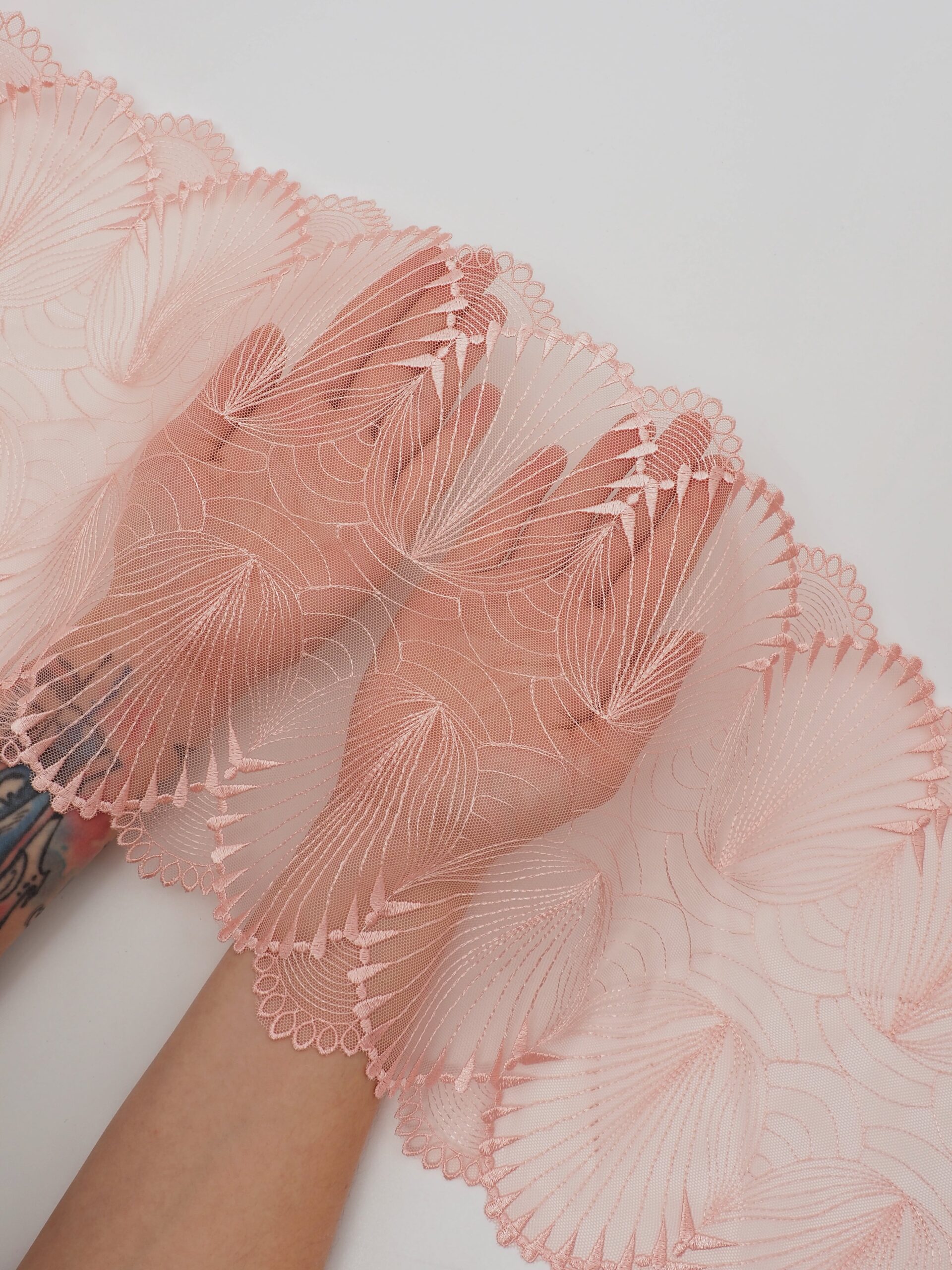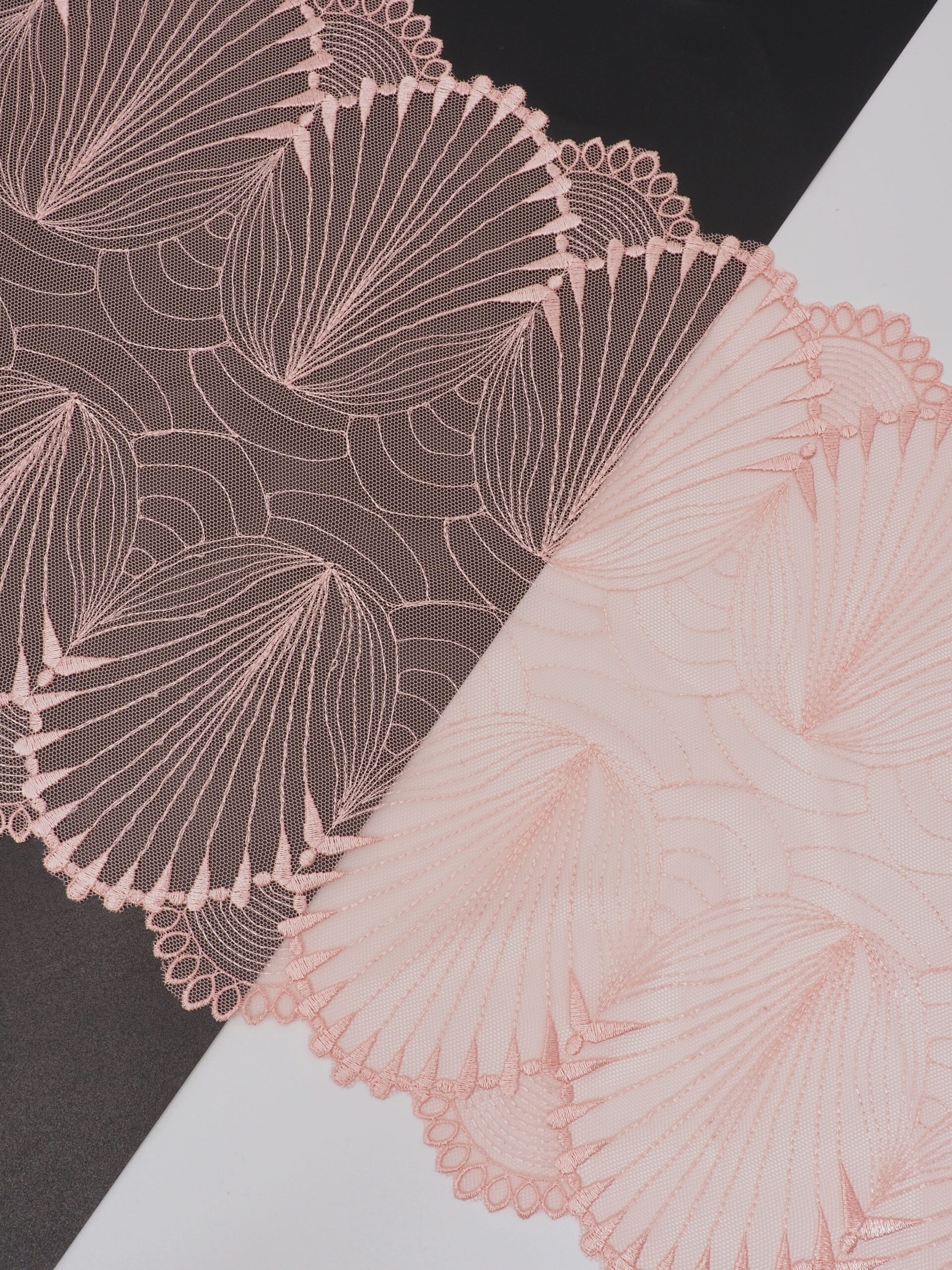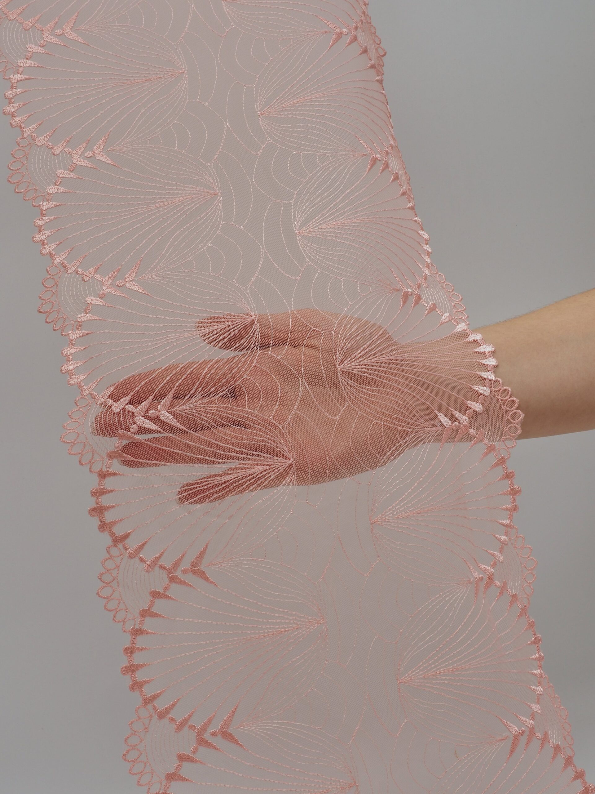 Вышивка на сетке коралловый миндаль - удобная и красивая ткань для создания оригинального декора. Готовая основа с кружевными узорами и орнаментами - настоящая помощь рукодельницам. Вышивка на сетке великолепно держит форму, не осыпается по краям, отлично драпируется, отличается высокой прочностью на разрыв, весит очень мало, служит в течение многих лет. Используя кружево на сетке, вы легко создадите эффектное эксклюзивное изделие. Материал считается универсальным. Его можно использовать в пошиве нижнего белья, кофты, юбки, блузки, вечернего и свадебного платья.
