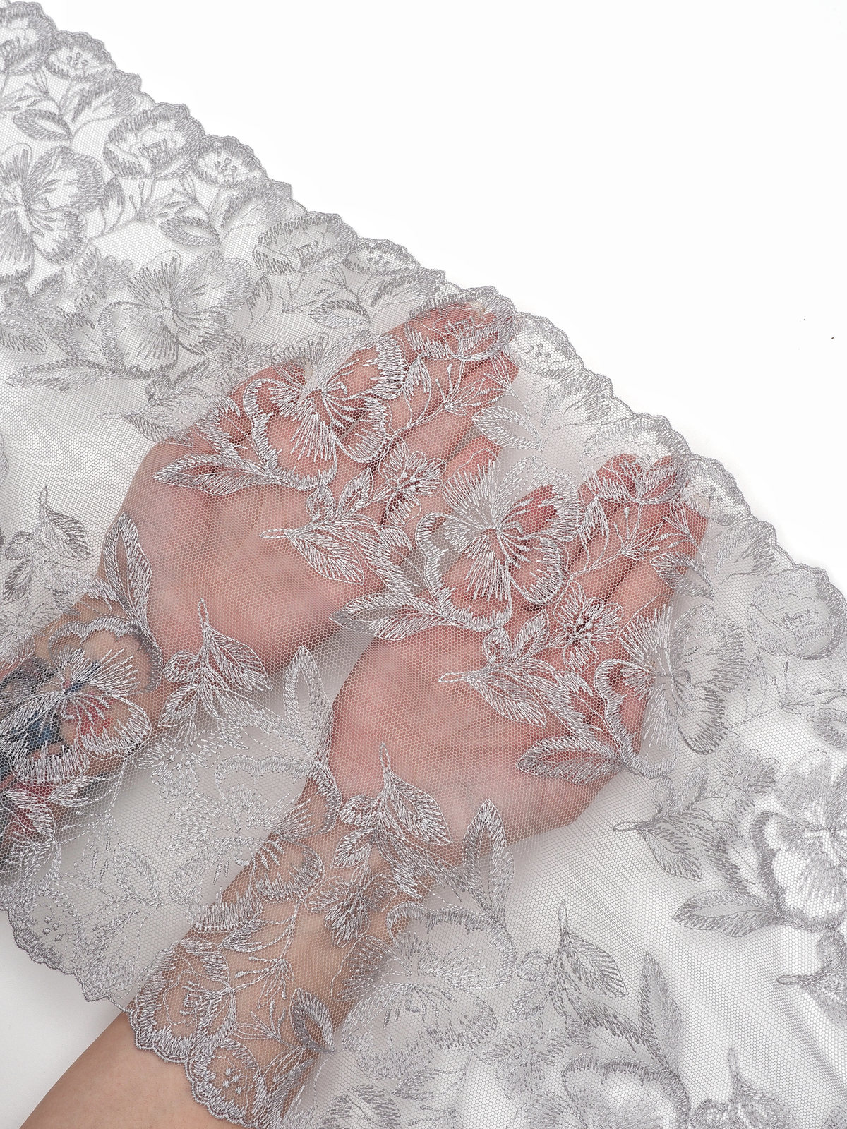 Ваше идеальное решение для создания эксклюзивного белья. Двухстороннее кружево с вышивкой на сетке сочетает эстетику и функциональность. Сочетание цвета с вышитым рисунком придаёт материалу особый шарм и универсальность.