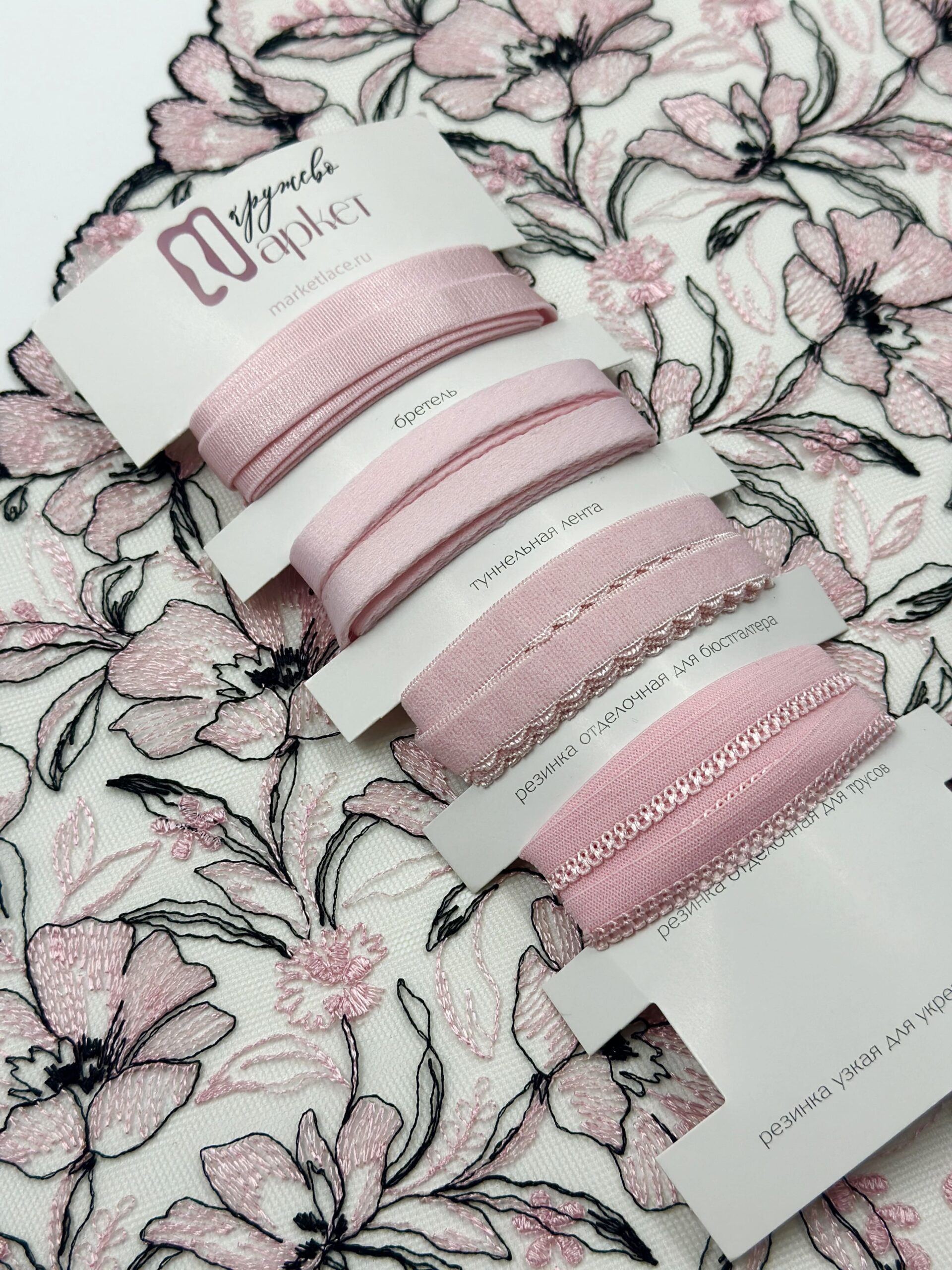 Кружево на сетке неэластичное бежевого оттенка с розовым и черным цветочным рисунком. Вышивка нежно-розового цвета на телесной сетке.
