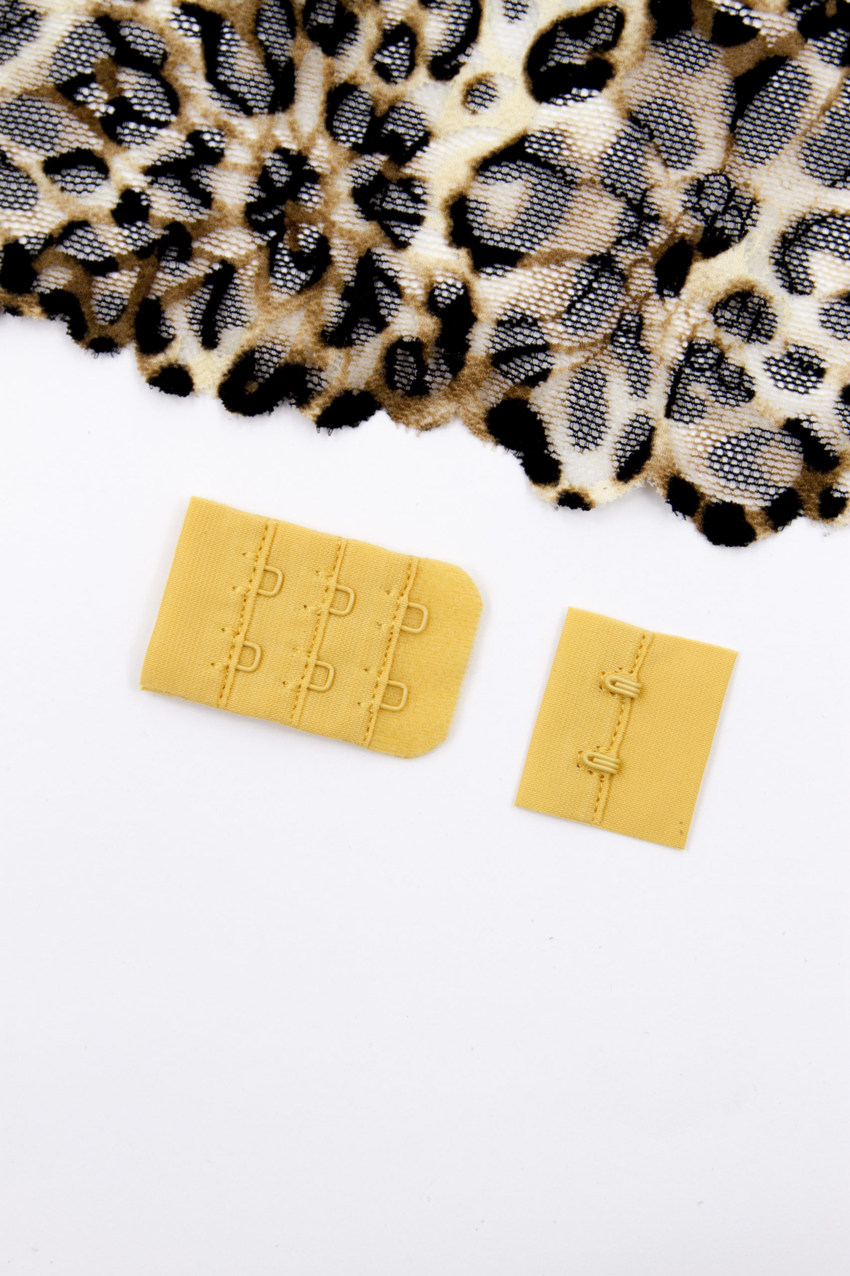 Застежка текстильная для бюстгальтера желтого оттенка.