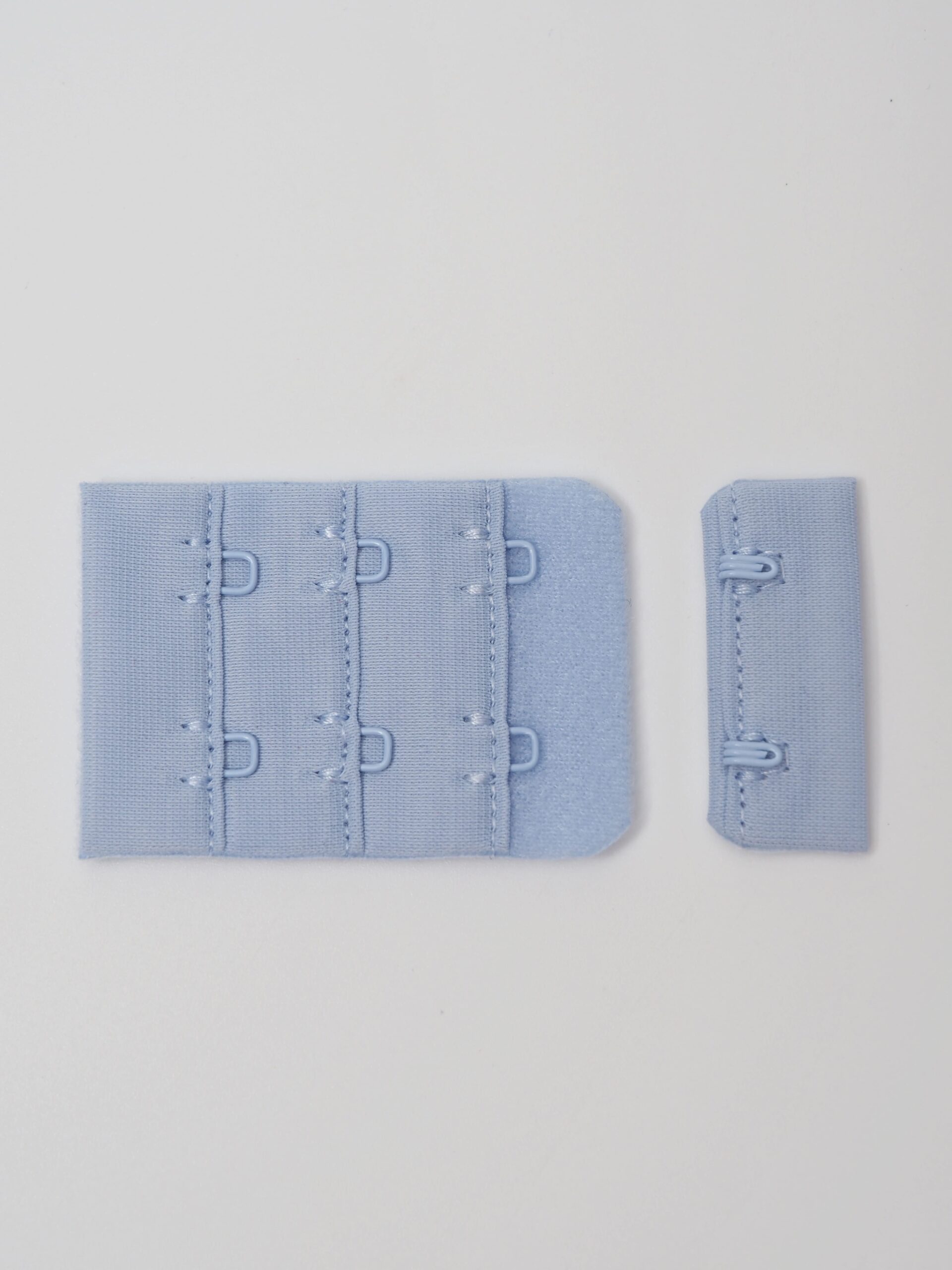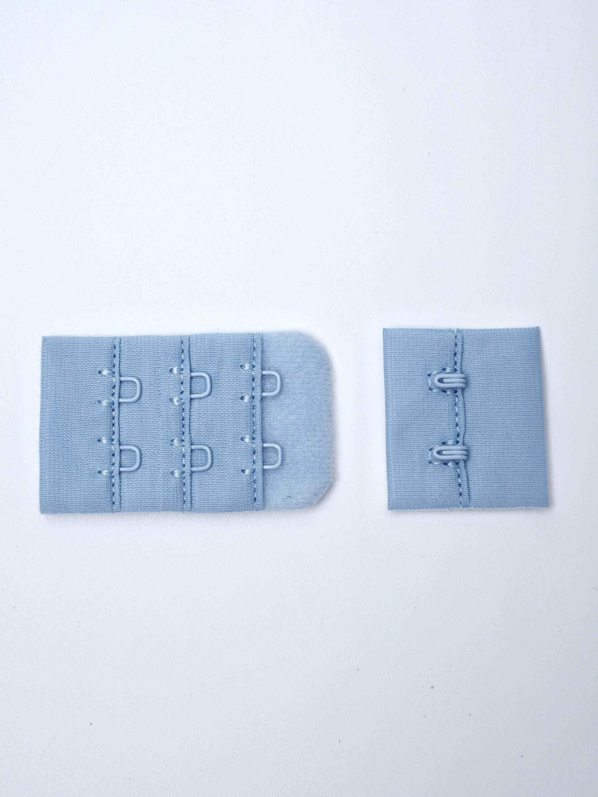 Застежка текстильная для бюстгальтера голубого оттенка.
